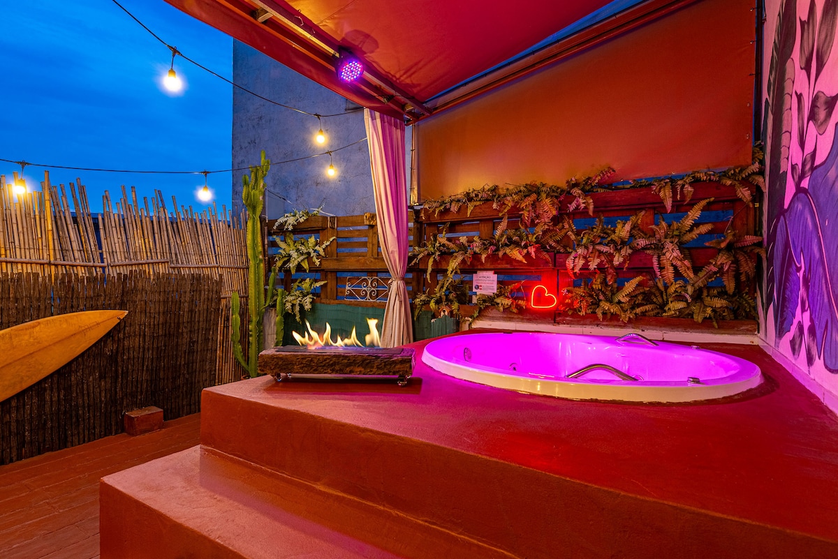 Một nơi nghỉ dưỡng lãng mạn hoàn toàn riêng tư, với lối trang trí bãi biển mộc mạc và ấm cúng, điểm nhấn là bể sục nước nóng trong khu vực ngoài trời — hoàn hảo cho các cặp đôi tận hưởng một đêm đặc biệt hoặc kỷ niệm một ngày quan trọng. Chúng tôi cung cấp đồ trang trí lãng mạn và bữa sáng (riêng biệt). Nhận phòng sau 8 giờ tối và trả phòng trước 5 giờ chiều. Vị trí an toàn, trước căn cứ PM và phía trên Mestre Gusta Gastrobar, hoàn hảo cho một buổi hẹn hò. Không có bãi đậu xe. Bãi đậu xe 24 giờ cách 100 m. @refugioa2