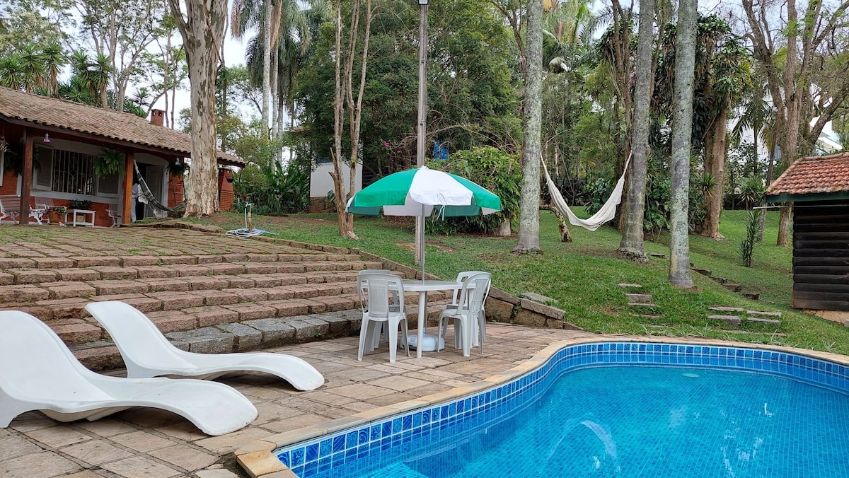-Forget your worries in this spacious and peaceful place. -Cool, practical, cozy single-story home, surrounded by nature, full of life (birds, trees, plants) -An attitude can change a story, believe me! -You schedule your day: -Pool, -Barbecue grill -Hammocks for resting in the summer -Fireplace in the cold. -It is the "countryside" within the city Free : highways, tolls and traffic jams. -We are 14min from GRU Airport and 30 km from Av. Paulista. -Access is restricted to residents