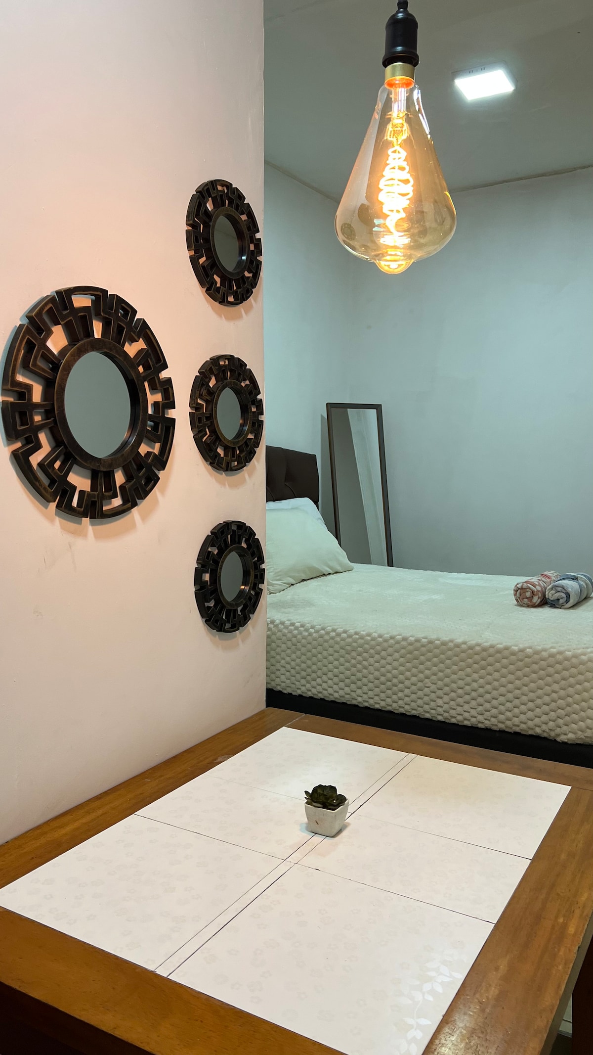 CD riêng với căn hộ bảo vệ 24/7 được trang bị nội thất(tầng ba/sân thượng với cầu thang xoắn ốc) sức chứa tối đa 3 người 15 phút từ nhà ga đất Guayaquil và trung tâm mua sắm phía bắc riocentro, trung tâm mua sắm phía bắc, trung tâm mua sắm Rio. Nhà để xe bên ngoài tòa nhà có camera an ninh.