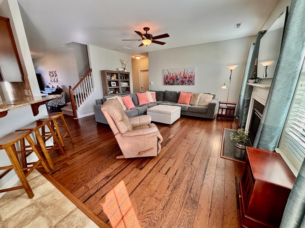 A perfect space for couples, families or groups traveling together for work. This 1938 home with modern kitchen will make you very feel very comfortable. One mile from downtown, it is a quiet spot close to everything - Tanger, shopping, colleges, and more. Enjoy a cup of a coffee in the morning sun on the front porch and unwind with a glass of wine by the fire pit at the end of your day. Directly across from a large park with running/biking, volleyball, tennis courts, and a playground.