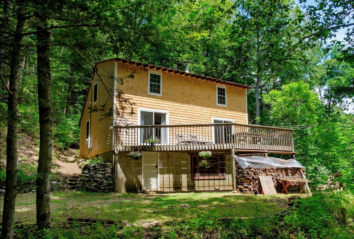 Bask in the beauty of rural Vermont while nestled in the woods of a cozy cottage along the Green River. Sit on the front deck and enjoy the sounds of the river or stargaze while surrounded by the enchanting beauty of the rolling emerald hills. Right outside the door you can walk, bike or jog for miles on quiet scenic back roads. Located on a dirt road 20 min. from Brattleboro & just a few miles from the Mass border, our cottage is the perfect place to relax or enjoy all the area has to offer.