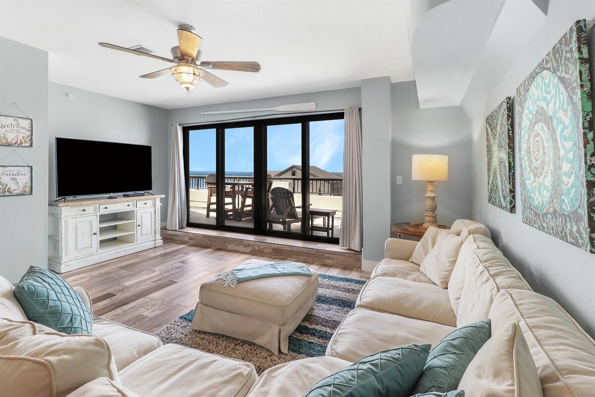 Welcome to your ultimate vacation rental at Mexico Beach, Florida - a breathtaking two-bedroom, two-bath unit with an extra-large balcony offering unobstructed views of the ocean and stunning sunsets. This is the perfect place for you to unwind and experience the ultimate relaxation. As you step inside, you are immediately struck by the beautiful and comfortable furniture and decor that enhance the charm and comfort of the unit. The spacious living room features a large sectional sofa and a lar