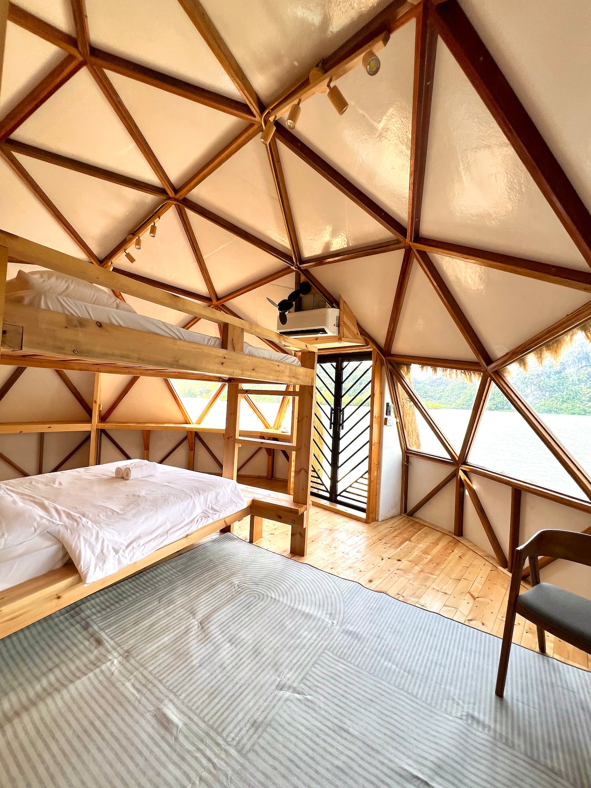 Mái vòm có điều hòa không khí sang trọng với tầm nhìn ra biển và phòng tắm riêng trên khu cắm trại ven biển. Ngắm hoàng hôn trực tiếp từ giường của bạn. Có nhiều nhà hàng Thái Lan trong khoảng cách đi bộ từ khu cắm trại cũng như một cửa hàng tiện lợi 7/11. Vườn quốc gia Mu Kho Phetra chỉ cách đó 10 phút đi bộ hoặc chèo thuyền kayak, nơi bạn có thể thấy một số thành tạo đá đáng kinh ngạc và tầm nhìn tuyệt đẹp ra Biển Andaman trong Công viên địa chất toàn cầu duy nhất của UNESCO ở Thái Lan.