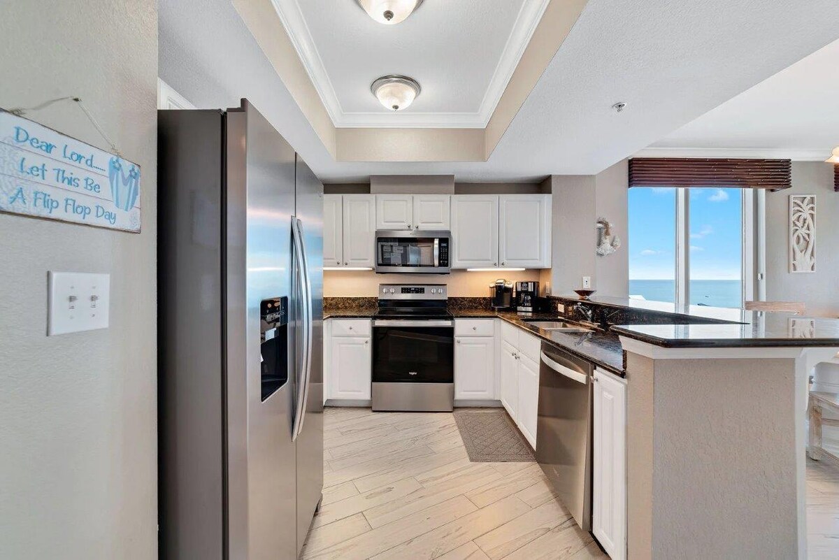 Bạn sẽ thích căn hộ 3 pho ̀ ng ngu ̉/2BA Beach phía trước rộng rãi này! Dễ dàng đến các bãi biển cát trắng có đường - chỉ cần một lối đi bộ lót ván ngắn! Bạn sẽ thích tầm nhìn ra đại dương và hồ bơi tuyệt đẹp từ cả phòng khách và phòng ngủ chính! Cả hai phòng đều có lối vào cửa kính trượt đến ban công phía trước gulf của bạn, được trang bị bàn và ghế ở sân hiên. Bạn sẽ thích nhấm nháp cà phê buổi sáng hoặc uống một ly rượu vang lúc hoàng hôn trên ban công trong khi ngắm nhìn khung cảnh đẹp của Vịnh Mexico.