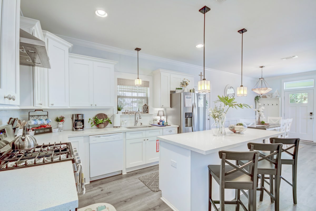 ☀️Chào mừng bạn đến với Blue Oak Cottage, một nơi nghỉ dưỡng 2 phòng ngủ/2 phòng ngủ đầy phong cách ở Gulfport, Mississippi — Ngủ 7 với giường thoải mái sang trọng, nhà bếp đầy đủ tiện nghi, TV thông minh, Wi-Fi nhanh và máy giặt/máy sấy. Chỉ cách bãi biển 2 phút đi bộ và nằm ở vị trí trung tâm gần các điểm tham quan, nhà hàng và khu mua sắm hàng đầu. Bãi đỗ xe miễn phí trên đường lái xe vào nhà và dễ dàng tự nhận phòng với khóa thông minh. Hoàn hảo cho các gia đình hoặc nhóm đang tìm kiếm sự thoải mái, tiện lợi và quyến rũ ven biển trên Bờ Vịnh Mississippi!