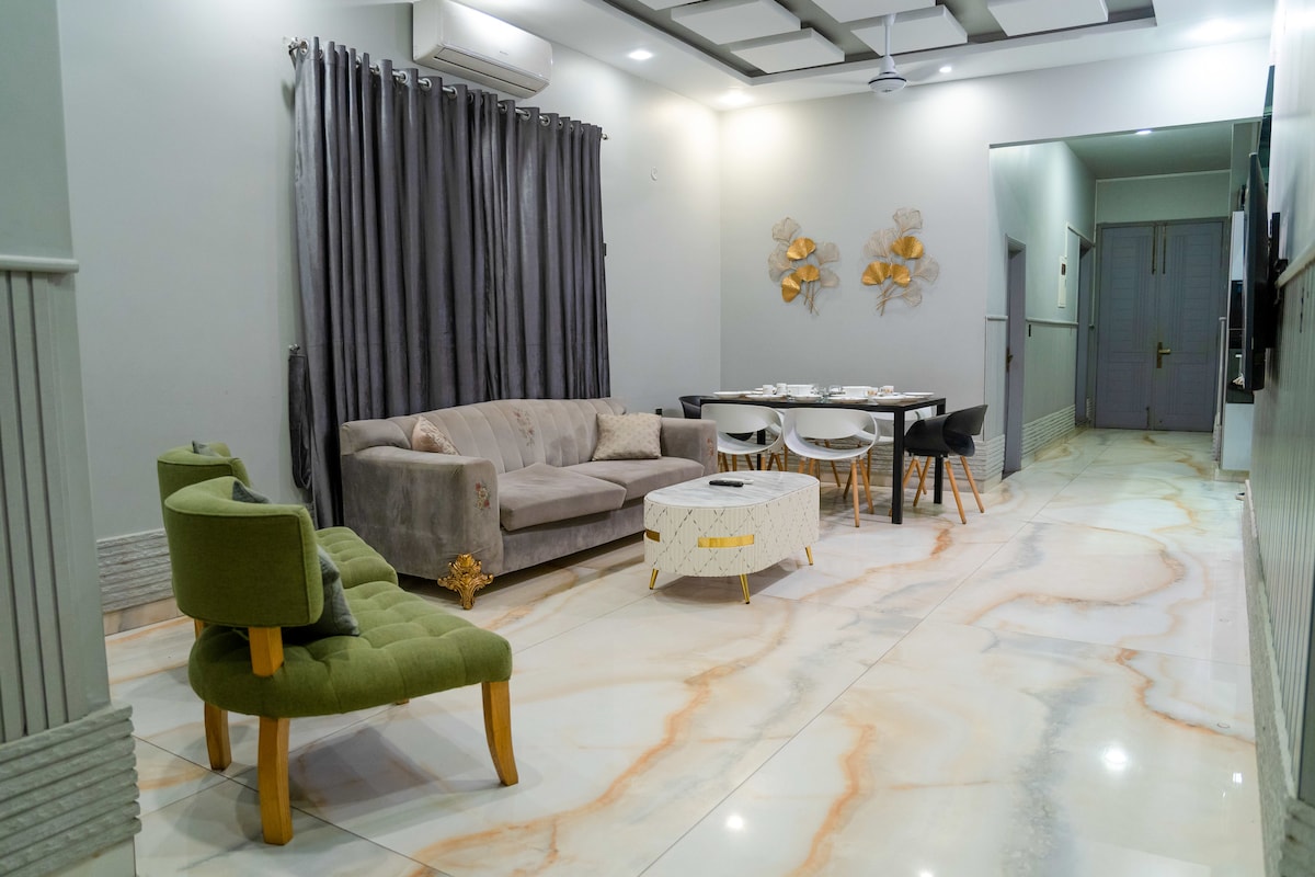 Khám phá lối thoát của bạn trong căn hộ 3 giường, 3 phòng tắm được cải tạo đẹp mắt của chúng tôi ở Clifton sôi động. Tòa nhà có nét quyến rũ ven biển cũ hơn, nhưng nội thất sang trọng, hiện đại và hấp dẫn. Chúng tôi chỉ cách Công viên Ibn-e-Qasim, Bãi biển Sea View và Trung tâm thương mại Dolmen vài phút. Nếu bạn thích ngoại thất hiện đại, một khách sạn có thể phù hợp hơn với bạn. Tuy nhiên, nếu bạn đang tìm kiếm một nơi nghỉ dưỡng yên bình, nơi bạn có thể tận hưởng sự pha trộn giữa sự thoải mái và cá tính, căn hộ của chúng tôi đang chờ đón bạn. Đặt chỗ ở của bạn ngay hôm nay!