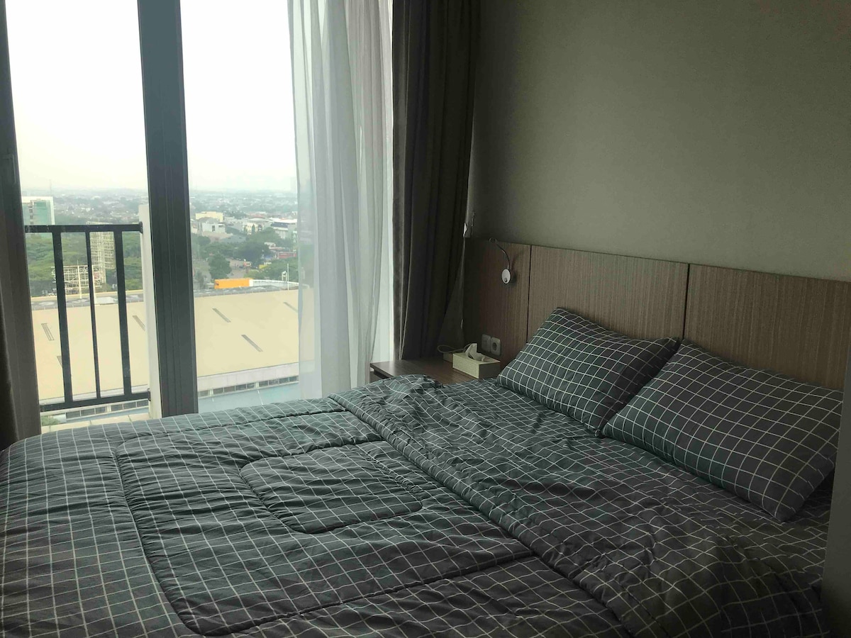 Xếp hạng trung bình 4,86/5, 14 đánh giáCăn hộ 2 phòng ngủ thoải mái tại Trung tâm South Tangerang