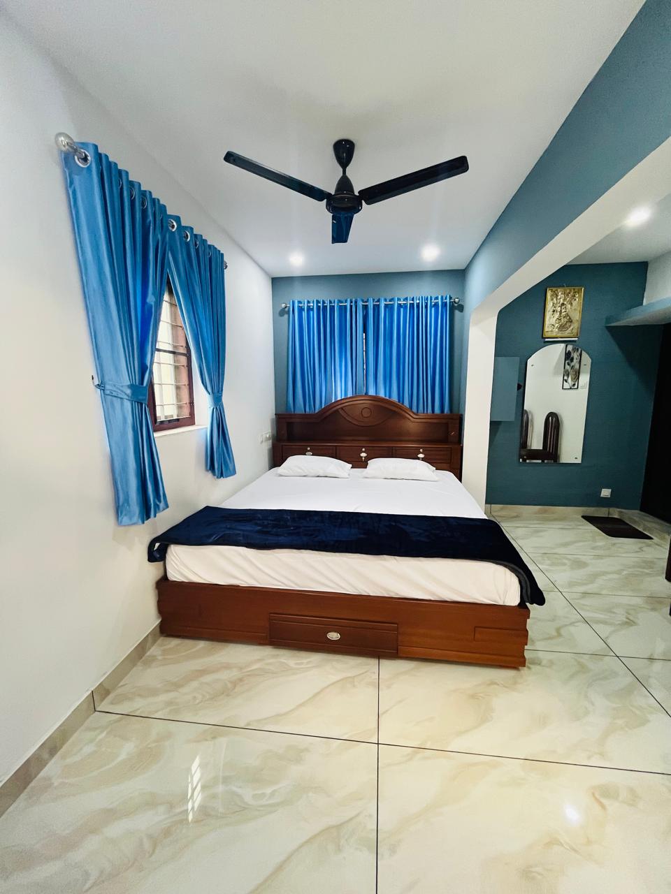 Nằm cách Đền Guruvayoor chỉ 900 m và gần Đền Mammiyoor, ngôi nhà độc lập 5BHK rộng rãi này lý tưởng cho các gia đình hoặc nhóm. Trải rộng trên hai tầng với nhà bếp và phòng khách riêng biệt, nó cung cấp 5 phòng ngủ điều hòa không khí với phòng tắm kèm theo, Wi-Fi tốc độ cao, sao lưu biến tần, CCTV (24/7), nước nóng, 2 TV, 2 máy giặt, 2 ghế sofa kiêm giường và bãi đỗ xe có mái che. Được trang bị đầy đủ cho thời gian ở dài hơn, nó hoàn hảo cho các chuyến thăm đền thờ hoặc họp mặt gia đình trong một khu dân cư yên bình.