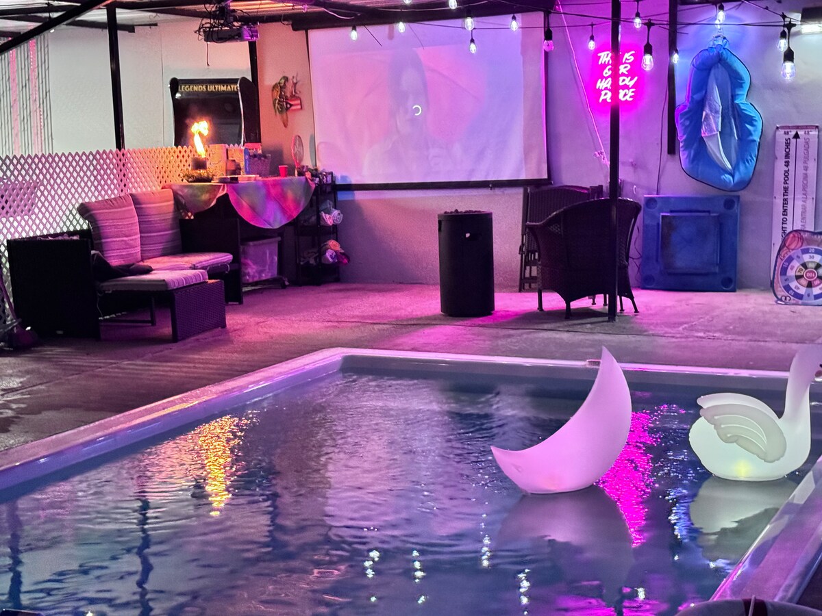 Loại bồn tắm jacuzzi riêng bên trong phòng. Chúng tôi muốn mang đến một trải nghiệm thú vị và đáng nhớ. Cơ sở vật chất rộng rãi và hiện đại. Phòng chung có 1 phòng ngủ với 1 giường cỡ queen và 1 giường cỡ queen bơm hơi trong phòng khách và 1 giường sofa cỡ queen. Cho tổng cộng 3 giường queen. Hãy cho chúng tôi biết chuyến thăm của bạn là gì và chúng tôi sẽ làm cho chuyến thăm của bạn trở nên đặc biệt. Tiện nghi jacuzzi, máy chiếu, hồ bơi, bể chứa nước và tấm pin mặt trời. 4 khách được bao gồm trong thời gian lưu trú 2 khách bổ sung để thanh toán. Dùng chung sân hiên.