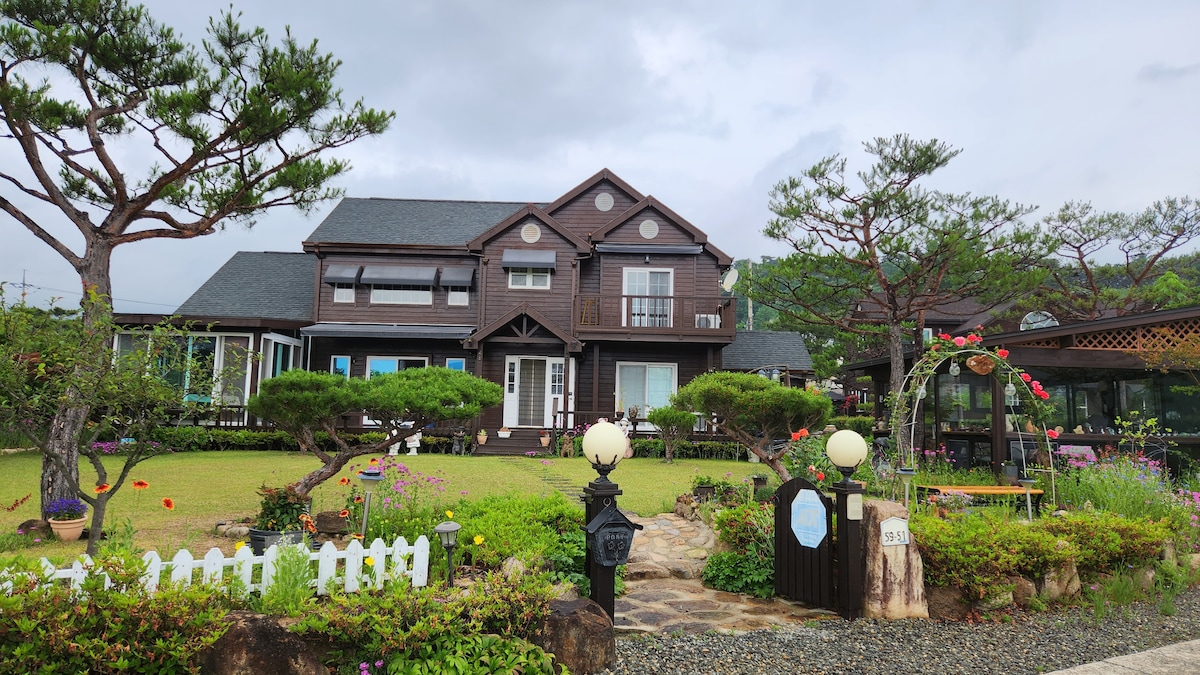 Tạo ra những kỷ niệm khó quên tại địa điểm độc đáo nhưng thân thiện với gia đình này. Chúng tôi chào đón những người cần một ngày nghỉ ngơi hoàn toàn khỏi cuộc sống hàng ngày của họ hoặc muốn tận hưởng thời gian riêng của họ một cách lặng lẽ mà không nhận thấy môi trường xung quanh. (Nếu bạn cần uống rượu quá mức và tiếng ồn lớn, vui lòng tránh đặt phòng tại chỗ ở của chúng tôi🙏) Không gian trong nhà cũng tốt, nhưng bạn có thể thưởng thức tiệc nướng, lò sưởi, v.v. trong không gian ngoài trời. Trong không gian trong nhà, bạn cũng có thể thưởng thức các thiết bị chuyển mạch khác nhau như YouTube, Netflix và Nintendo với máy chiếu chùm tia. Những hoạt động gần đó để tham gia Công viên Tự nhiên và Thung lũng Spa Có Qingdao Almi-mit.