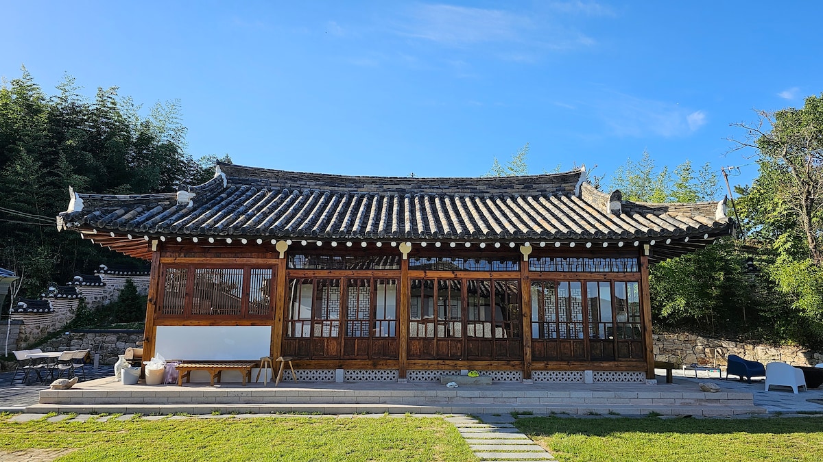 Đây là một hanok tư nhân độc đáo với các tác phẩm điêu khắc trong một sân cỏ rộng lớn với tổng cộng 450 pyeong không gian. Ngoài ra còn có tranh vẽ và đồ gốm trong nhà, vì vậy bạn có thể cảm nhận được loại chỗ ở mới. Nó bao gồm 2 đồng tổng thể. Số tiền trên là số tiền khi sử dụng Tòa nhà 1. Năm nay chúng tôi sẽ chỉ nhận được một nhóm, vì vậy đây là cơ hội tuyệt vời để sử dụng sân lớn một mình. Có thể sử dụng tối đa 10 phút. Nếu có hơn 5 người, chúng tôi sẽ mở thêm 1 tòa nhà khác. (Vui lòng hỏi về giá) Thư giãn với gia đình và bạn bè của bạn trong một chỗ ở hanok yên tĩnh. ^ ^