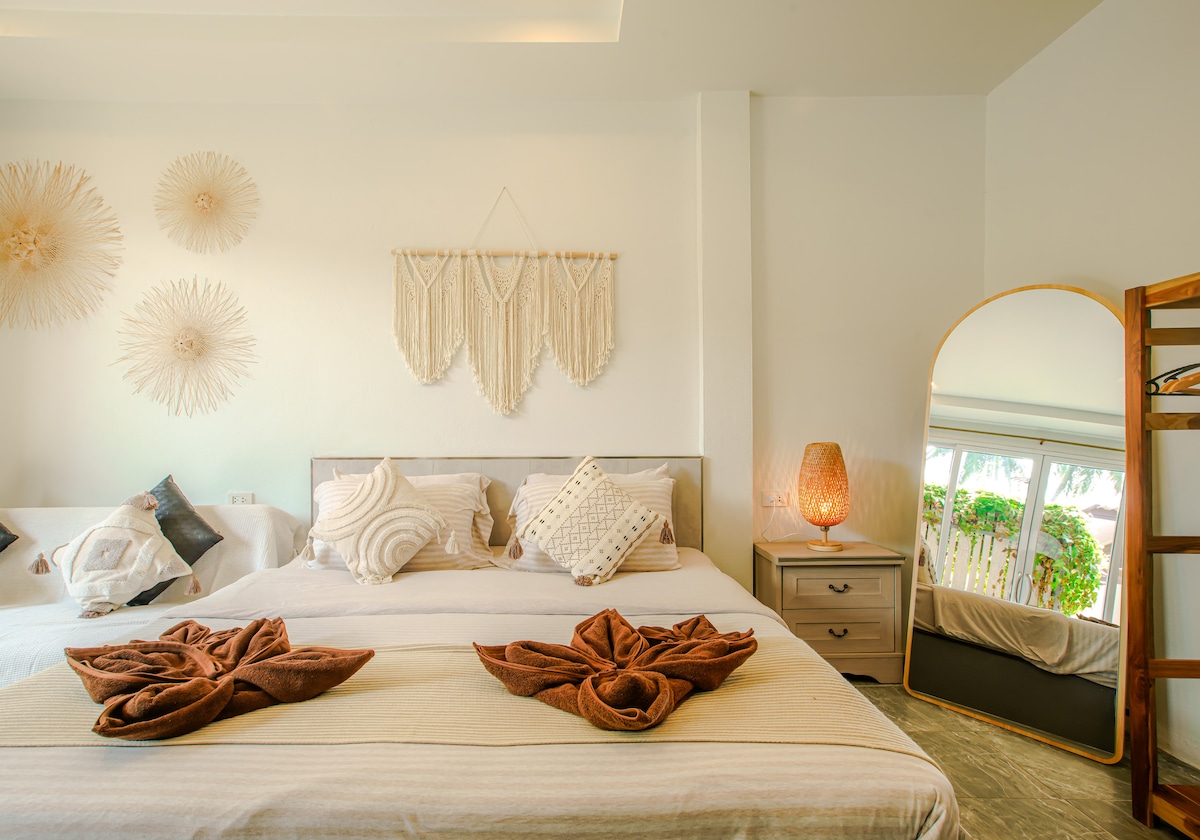 Chào mừng đến với Phangaia Garden Resort! Một ngôi nhà phong cách, ấm cúng với 2 phòng ngủ thoải mái, 2 phòng tắm hiện đại, bếp đầy đủ tiện nghi và điều hòa nhiệt độ mạnh mẽ trong mỗi phòng. Được thiết kế để mang lại sự thoải mái và thư giãn. 📍 Vị trí đắc địa ở Thong Sala – cách bến tàu, quán cà phê, nhà hàng, tiệm mát-xa, Chợ Pantip & 7/11 5 phút. Bãi biển Nai Wok cách đó 15 phút đi bộ, hoàn hảo để đi dạo buổi sáng. 🌴 Nơi nghỉ dưỡng Koh Phangan hoàn hảo của bạn!