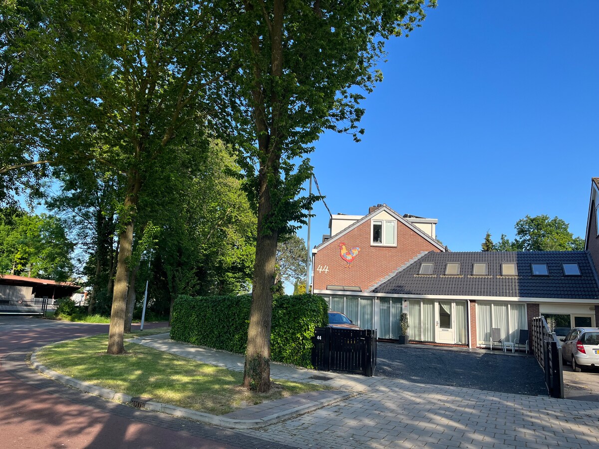 Tôi tự hào và vui mừng khi thuê một căn hộ vườn 2 người trong ngôi nhà nông thôn của tôi tách biệt với nhà tôi ở Heemstede bao gồm sử dụng phòng tắm riêng (được cải tạo hoàn toàn vào tháng 12 năm 2022). Có chỗ đỗ xe miễn phí trong khuôn viên và có sân thượng riêng. Ga Heemstede Aerdenhout nằm bên kia đường, nơi bạn có thể thuê xe đạp (tối đa 20 phút đi xe đạp đến Zandvoort, 10 phút đi xe đạp đến Haarlem!). 23 phút đi tàu đến Amsterdam. Thư giãn trong căn phòng ngoài trời yên bình, đầy phong cách này.
