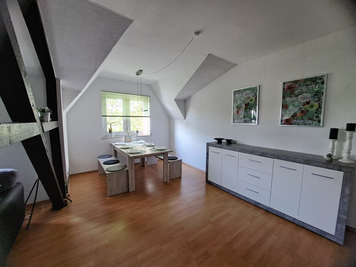 - Căn hộ gác mái 65m² ấm cúng - Đối với 4 người - Các điểm đến tham quan ở khu vực xung quanh, ví dụ: Alpin Center, Centro Oberhausen , Movie Park, Eloria Erlebnisư trước đây là Grusellabyrinth Căn hộ nhỏ của chúng tôi nằm trong nhà 3 gia đình ở tầng 2. Căn hộ rất chú ý đến từng chi tiết. Chúng tôi hy vọng khách của chúng tôi cảm thấy như ở nhà.,