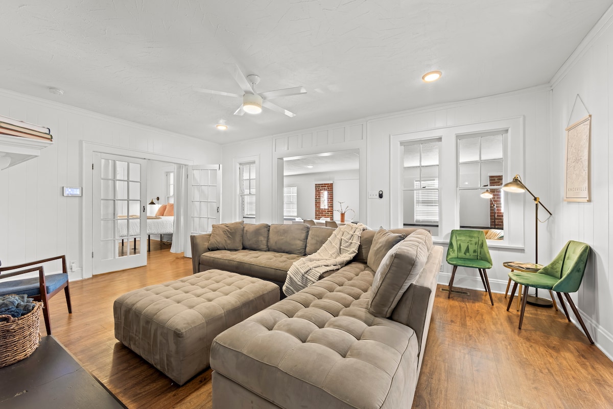 Chào mừng bạn đến với Emerald Abode của chúng tôi, nằm cách Old North Knoxville 2 dãy nhà về phía bắc, trong Công viên Oakwood-Lincoln. Nhà của chúng tôi nằm trong khoảng cách đi bộ/đi xe đạp đến các quán cà phê, quán ăn, nhà máy bia và cửa hàng đồ cổ ở Happy Holler chiết trung. Tìm nơi nghỉ ngơi của bạn trong căn hộ tầng hầm dành cho khách của chúng tôi được trang bị giường cỡ king, ghế sofa ngủ, phòng tắm đầy đủ và bếp nhỏ trong khi chỉ cách trung tâm thành phố 2 dặm, cách Đại học Tennessee 3 dặm và cách Công viên quốc gia Great Smoky Mountains 40 dặm.