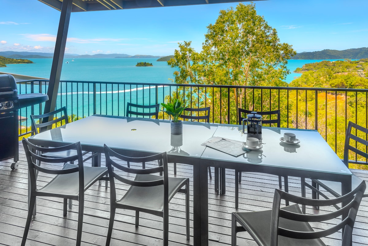 Take a break & unwind at this peaceful island retreat. Fully renovated (August 2023) modern 1 bedroom fully self contained apartment perfect for couples with views of the Whitsunday Passage. Sunsets are spectacular! Bedroom - king size bed & 2 balconies. Brand new modern kitchen & laundry. Comfortable 3 seat electric recliner lounge with tv and netflix subscription makes evenings a time to relax and unwind. BBQ, dining & deck chairs on the balcony draw you out to a tropical paradise.