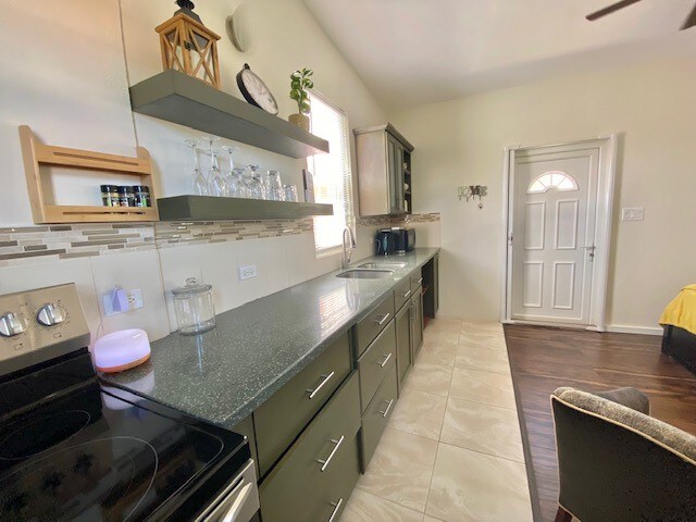 Đây là một căn hộ rất kỳ lạ và đã được chào đón nồng nhiệt bởi những khách đã ở đó. Khi bạn nhìn ra cửa trước của lối vào căn hộ, bạn có thể thấy hồ bơi cách đó 5 feet. Bạn cũng có thể nhìn thấy đại dương xanh trong từ giường của mình khi nhìn ra ngoài. Đây là một căn hộ rất lãng mạn với những bức tường xanh hòa quyện với môi trường của nó.