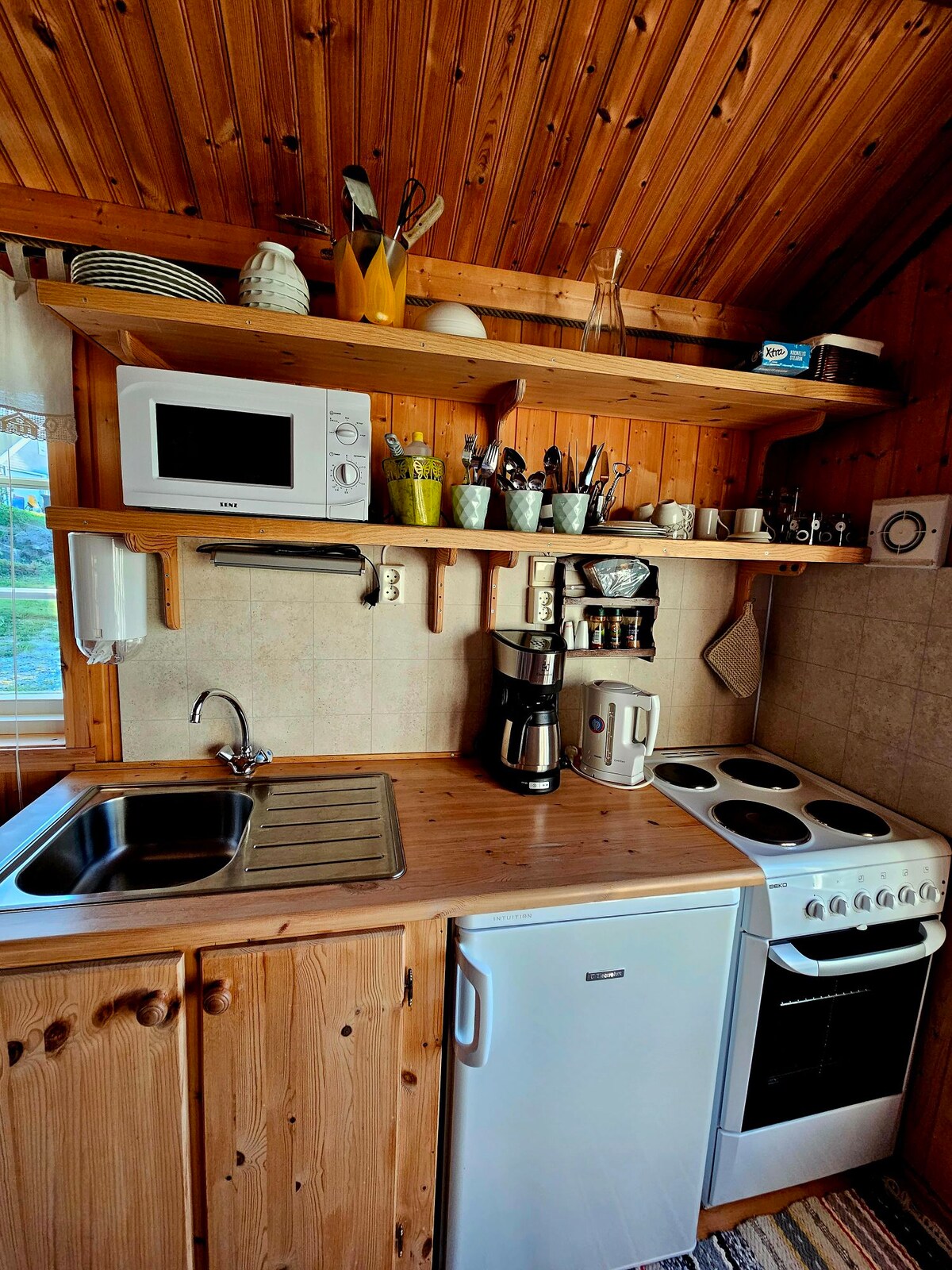Nhà nghỉ thôn dã nằm ở phía bắc của hòn đảo. Đây là thời điểm duy nhất có giờ nghỉ giữa đêm dài nhất. Tòa nhà này là orginale một nhà thuyền. Di chuyển 400 mét từ cảng Nes khoảng 10 năm trước. Nó được khôi phục từ một nhà thuyền nguyên thủy thành một ngôi nhà nghỉ thôn dã ấm cúng trong một khu đất riêng tươi tốt với tầm nhìn ra đại dương. Bạn có chỗ đỗ xe riêng, bãi cỏ, ghế ngồi với đồ nội thất ngoài trời và lò sưởi. Cho thuê tối thiểu 4 ngày.