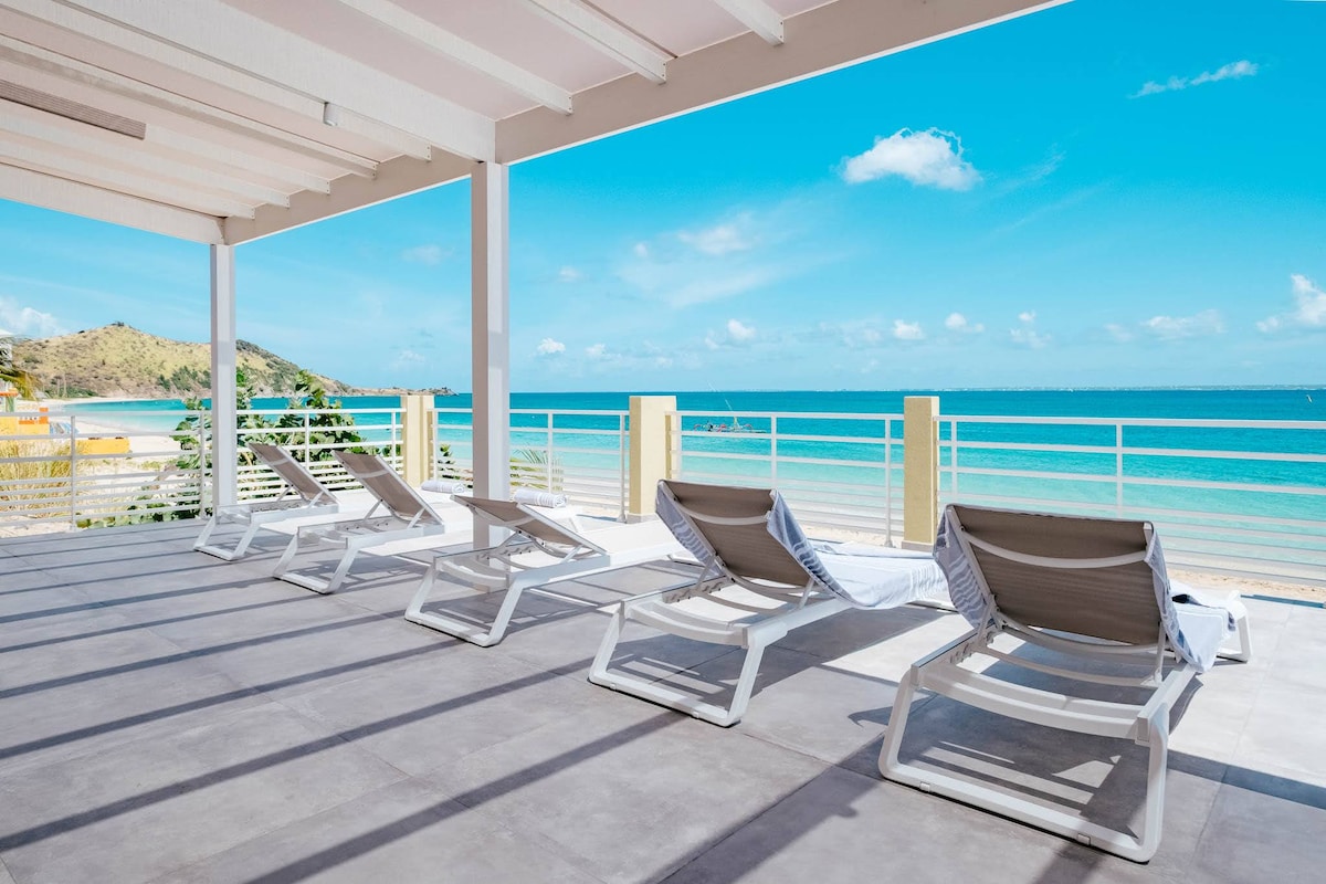 Một tầng lửng ven biển đặc biệt trên Bãi biển Grand Case, mang đến tầm nhìn ra đại dương hùng vĩ và vị trí đắc địa phía trên Rainbow Café mang tính biểu tượng. Vào mùa cao điểm, bầu không khí phong cách và thời thượng tạo nên không khí cho đến khoảng 11 giờ tối. Giường tắm nắng có thể được đặt trực tiếp hoặc thông qua chúng tôi - nhưng khách đặt phòng với sự giúp đỡ của chúng tôi sẽ được hưởng các đặc quyền. Một nơi nghỉ ngơi sáng sủa, tinh tế cách các địa điểm tốt nhất của Grand Case vài bước chân.