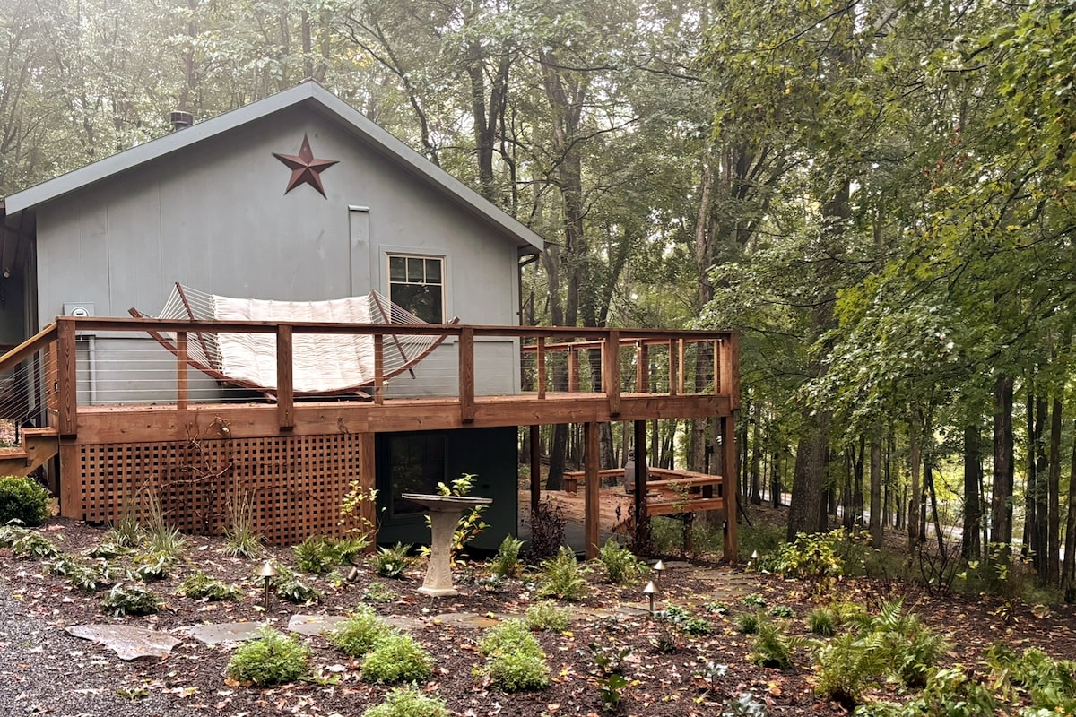 Cabin được cải tạo hoàn toàn nằm giữa những tán cây. Cabin thoải mái và phong cách này là một nơi hoàn hảo để ghé thăm Bryce Resort (1,5 dặm) và nhiều nhà máy rượu vang và đi bộ đường dài gần đó. Bồn tắm nước nóng là nơi lý tưởng để thư giãn và hít thở không khí núi non. Nhiều không gian ngoài trời và bàn lửa để tận hưởng. Giường Memory Foam mới, TV 65 inch trên lò sưởi điện, đầu vòi sen mưa, nhà bếp có sẵn Mỗi inch của ngôi nhà đã được thiết kế cho một kỳ nghỉ lãng mạn hoặc gia đình hoàn hảo.