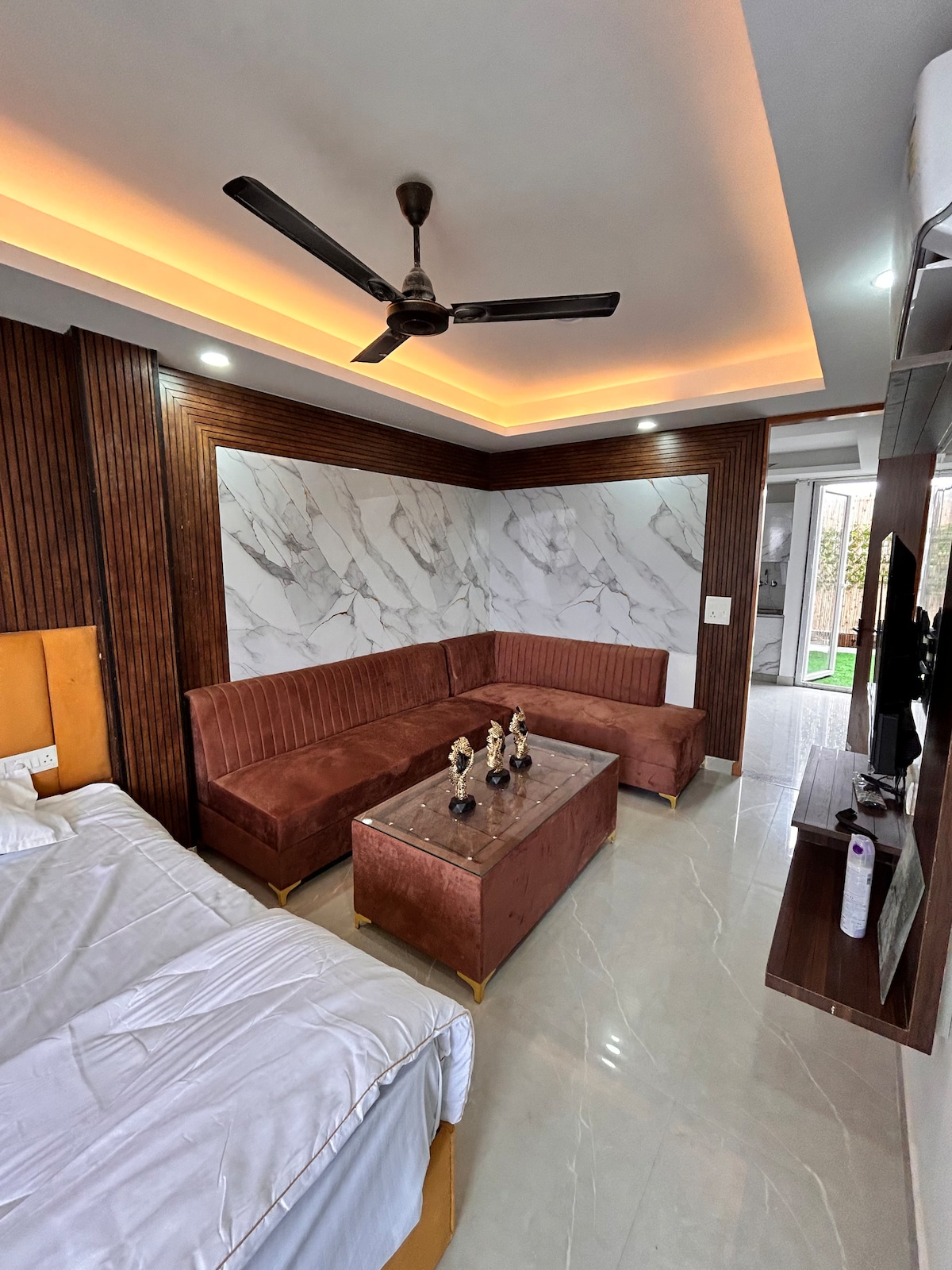 - 1 Bedroom apartment with attached with fully equipped kitchenette and bathroom is located at the ground floor of a residential building. - All the necessary amenities for a seamless experience. - Fresh towels and toiletries. - Wifi with 55' inch TV (including Netflix, Amazon prime & Hotstar etc). - couple friendly. - 6 km from IGI Airport, New Delhi. - 1.3 km from Indian Aviation Academy. - 1.4 km Indian Spinal Injury Center. - 3 km DLF Emporio Mall, Vasant Kunj. - 4 Km from Fortis Hospital