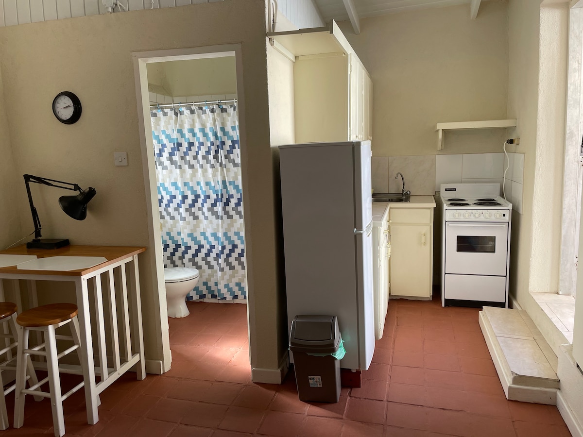 Căn hộ một phòng ngủ (giường Queen) có ghế sofa kéo ra ở tầng trệt, trong phòng khách và được gắn gara vào nhà chính. Nằm trên bờ biển phía nam của Barbados, cách bãi biển và lối đi bộ lát ván ba phút đi bộ, gần các quán bar, trung tâm thương mại/cửa hàng, văn phòng/ hiệu thuốc của bác sĩ, trạm xăng và siêu thị.