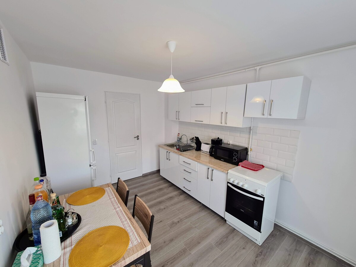 Căn hộ 1 phòng ngủ ấm cúng, phòng khách với giường sofa, hoàn hảo cho các cặp đôi hoặc nhóm nhỏ đang tìm kiếm sự thoải mái. Nó có phòng tắm hiện đại và bếp đầy đủ tiện nghi với tất cả các dụng cụ cần thiết, bao gồm cả gia vị nấu ăn. Chỉ cách các điểm du lịch chính ở Hațeg vài phút, đây là nơi lý tưởng để thư giãn sau một ngày khám phá.