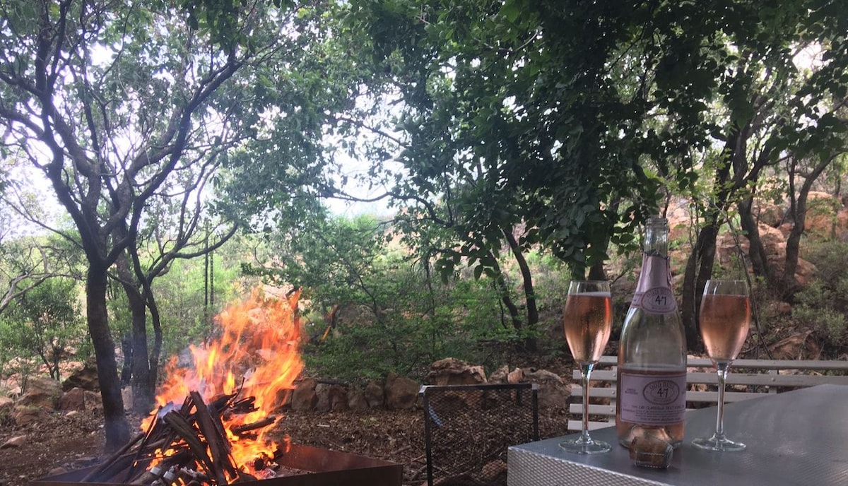Nhà nghỉ thôn dã trong vườn yên bình và riêng tư này có bố cục studio và nằm giữa những cây lớn, nơi có tiếng chim và đài phun nước đồng hành cùng bạn. Chúng tôi có năng lượng mặt trời và nước dự phòng. Nằm ở vị trí trung tâm giữa Castle Gate, Trung tâm mua sắm Menlyn và Trung tâm thương mại Brooklyn. Cách bệnh viện Mediclinic Kloof và bệnh viện Groenkloof Life chưa đầy 5 km. Ẩm thực cao cấp và đồ ăn mang đi có thể được tìm thấy trong phạm vi 2 km. Nhà nghỉ thôn dã có lò sưởi cho những đêm lạnh giá và một hố đốt lửa để giải trí.