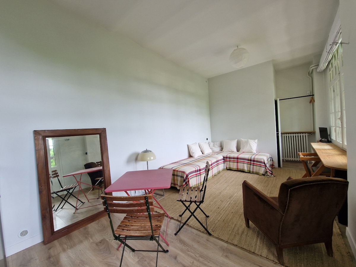Studio một tầng, 24 m2, có giường đôi hoặc hai giường đơn, nhìn ra sông Seine, với tầm nhìn ngoạn mục ra Paris, nằm trên đỉnh Meudon Bellevue, trong một lối đi riêng, với một khu vườn rộng 900 m². Gần các cửa hàng, nhà hàng và phương tiện giao thông (Métro 9 - Xe điện T2 - Tuyến tàu điện tử N - Xe buýt), cách Tháp Eiffel 25 phút, ga tàu Montparnasse 12 phút, Versailles 12 phút. Đường dành cho xe đạp đến Paris. Lý tưởng để làm việc (Wi-Fi tốc độ cao) hoặc thư giãn!