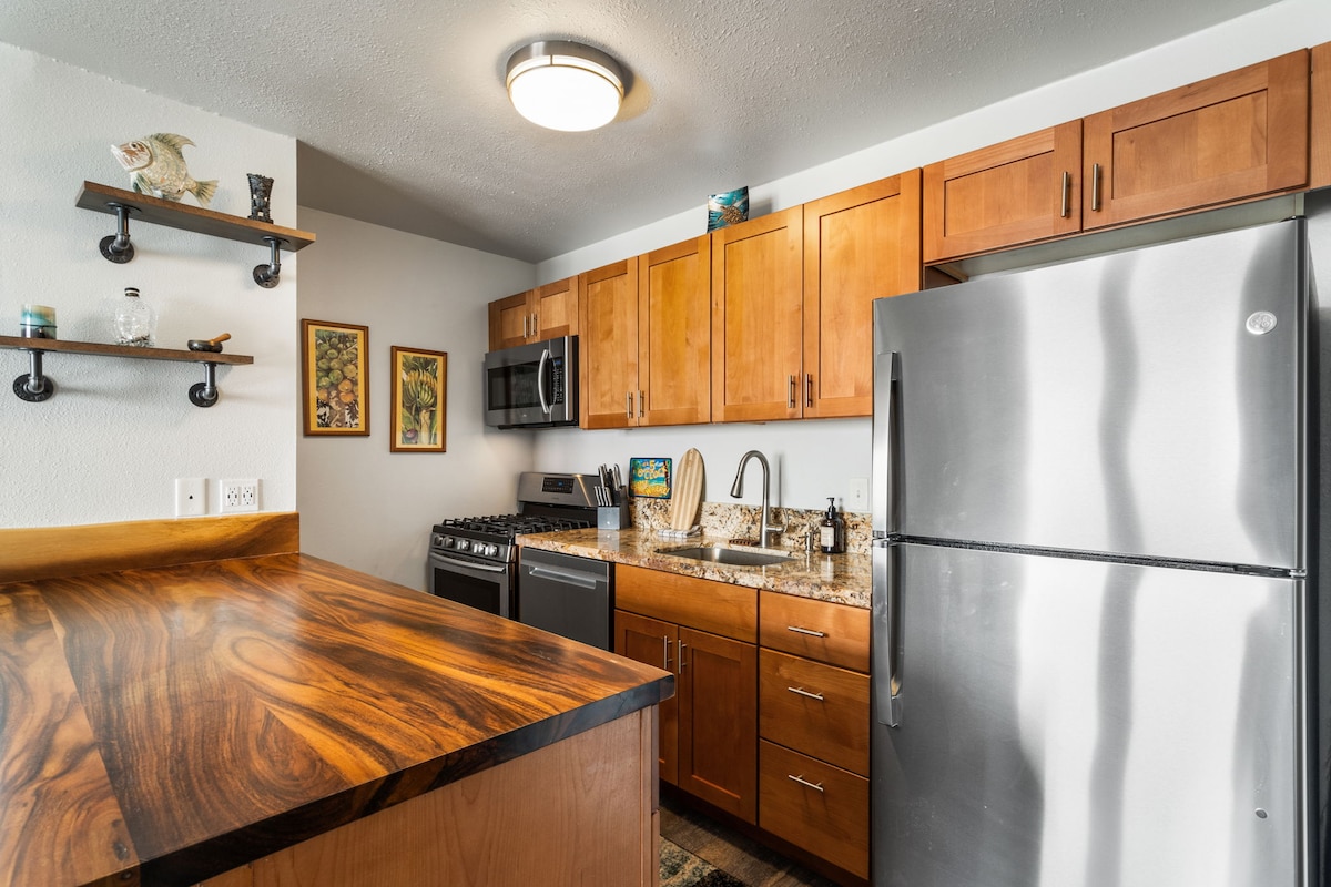 Căn hộ góc tầng trên cùng tại Kepuhi Beach Resort, trên hòn đảo đặc biệt Molokai....ở giữa Maui và Oahu! Trần nhà mở hình vòm, rộng rãi và thoáng mát. Hoàn toàn được tu sửa và trang bị mới. Gần bãi biển và hồ bơi bên bờ biển, tầm nhìn ra Kaiaka Rock, lướt sóng đại dương, hoàng hôn sống động. Nhà bếp đầy đủ tiện nghi, giường cỡ King sang trọng. Không dây nhanh, SmartTV 40inch. Khung cảnh hoàn hảo để rút phích cắm, đi bộ đường dài hoặc đạp xe trên những con đường mòn đất đỏ, khám phá các bãi biển và trải nghiệm Molokai một cách trọn vẹn.