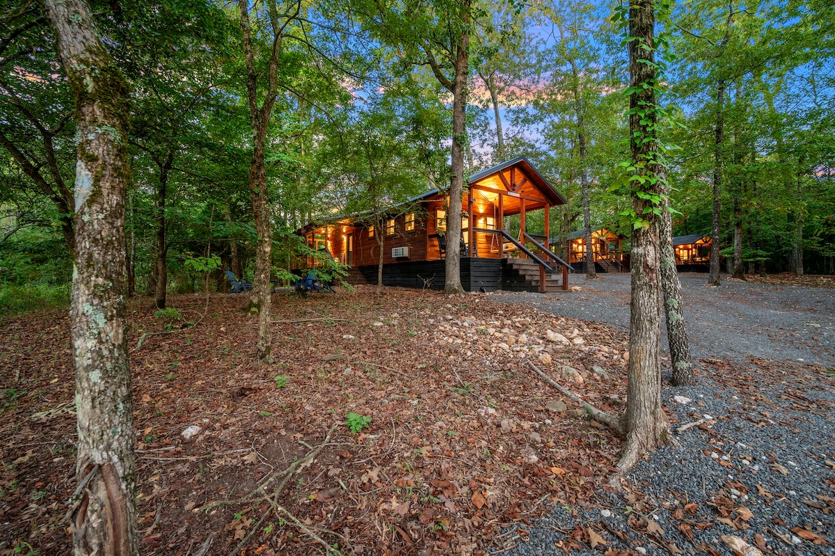 Cabin 1 phòng ngủ quyến rũ này có phòng ngủ ấm cúng với giường cỡ king sang trọng. Tận hưởng buồng tắm đứng cho hai người. Phòng khách và phòng ngủ được trang bị TV thông minh. Tận hưởng bình minh hoặc hoàng hôn tuyệt đẹp trên hiên nhà riêng hoặc thư giãn bên hố lửa trong khi nướng mùi. Peaceful Reset là một cabin không có lông/thú cưng, hoàn hảo cho những người bị dị ứng. Peaceful Reset gần với tất cả các trang phục chèo thuyền kayak, vì vậy bạn sẽ không phải lái xe xa để tận hưởng một ngày vui vẻ trên sông Mountain Fork.