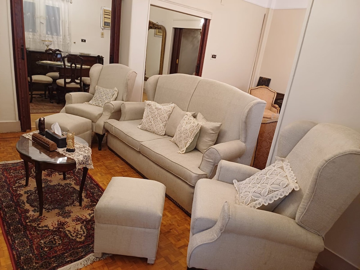 Tại trung tâm của heliopolis, nơi lịch sử gặp gỡ hiện đại, hãy thử sự thoải mái cổ điển với vị trí đắc địa, Chúng tôi đang cung cấp cả sự quyến rũ của quá khứ và sự tiện lợi của hiện tại, Gia đình bạn sẽ ở gần mọi thứ khi bạn ở tại địa điểm nằm ở trung tâm này, cách sân bay Cairo 15 phút, Cách trung tâm mua sắm City Stas 10 phút,mặc dù có vị trí yên tĩnh, cách chợ địa phương một quãng đi bộ. rất gần các hiệu thuốc, bệnh viện và các loại câu lạc bộ đêm khác nhau