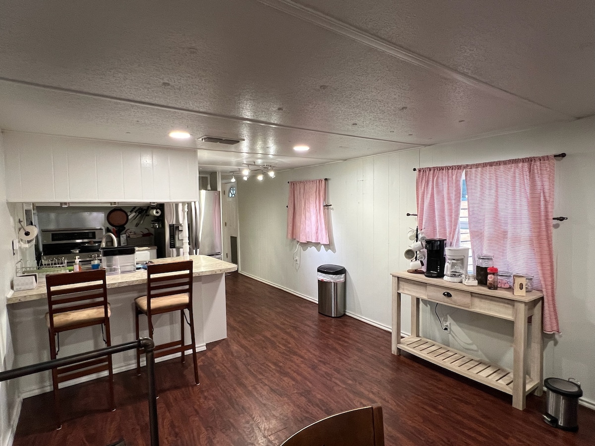 1 room apartment above our barn. Rustic decor with deck to set and watch sunsets and wildlife. A small pond full of Sun Perch is great for kids and a larder pond in the back full of bass and crappie. Pretty quiet around here, so if you're looking for a place to get away from the hussle of life, this is it. airbnb.com/h/cowcreek, our second BnB may be available if the barn is already booked