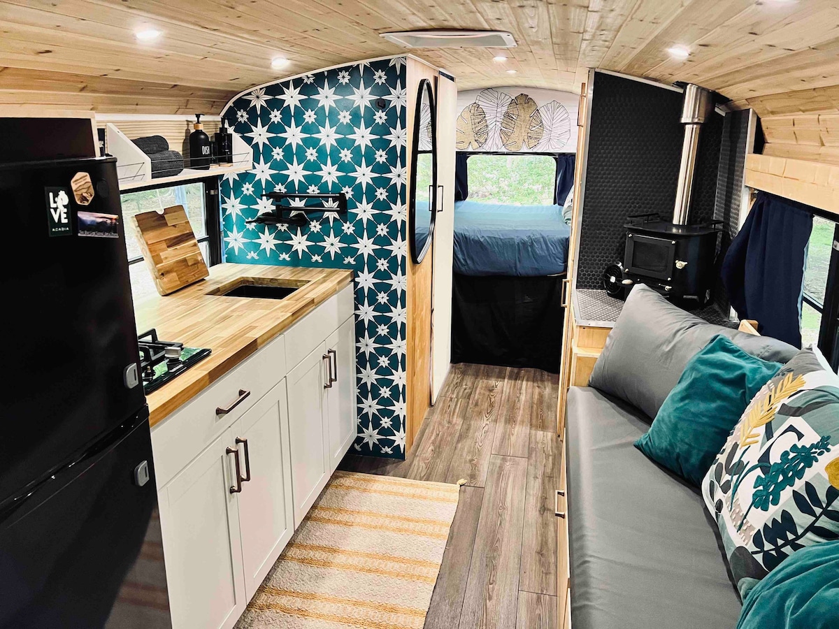Experience the ultimate glamping adventure in our converted school bus! Nestled on 5 acres of land, the campsite features lush woods and a creek. Enjoy the peace and quiet of nature with the comfort of a home away from home. Our skoolie is the perfect basecamp for outdoor adventures-just 30 minutes to Richmond and 5 minutes from the nearest trailhead at Pocahontas State Park with pass included.
