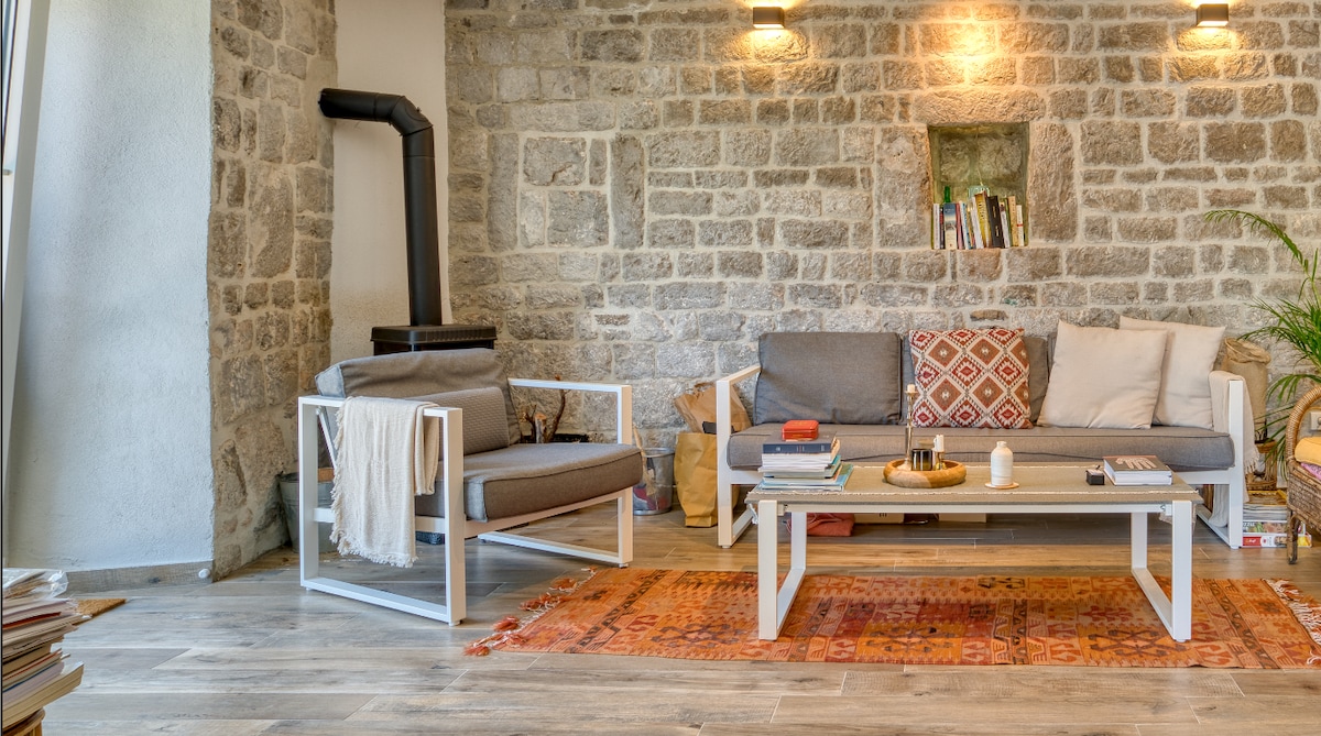 Ngôi nhà đá cũ ở làng Mrkovi, được khôi phục tàn tích với những tiện nghi hiện đại, lý tưởng cho các gia đình và các cặp đôi thân thiện. (4 đến tối đa 8 người) Tòa nhà chính và bên ngoài kết nối với cầu thang bên ngoài. Tầng trệt như phòng khách và phòng ăn, giường sofa đôi, hệ thống sưởi sàn, lò sưởi mở, nhà vệ sinh. Cầu thang nội thất kết nối các phòng. Tầng 1: mở ra mái nhà, lò sưởi, giường sofa đôi, khu vực tiếp khách, cầu thang lên phòng trưng bày với giường đôi và ban công. Từ phòng trưng bày, bạn có thể lên sân thượng. Mức giá cố định theo yêu cầu.