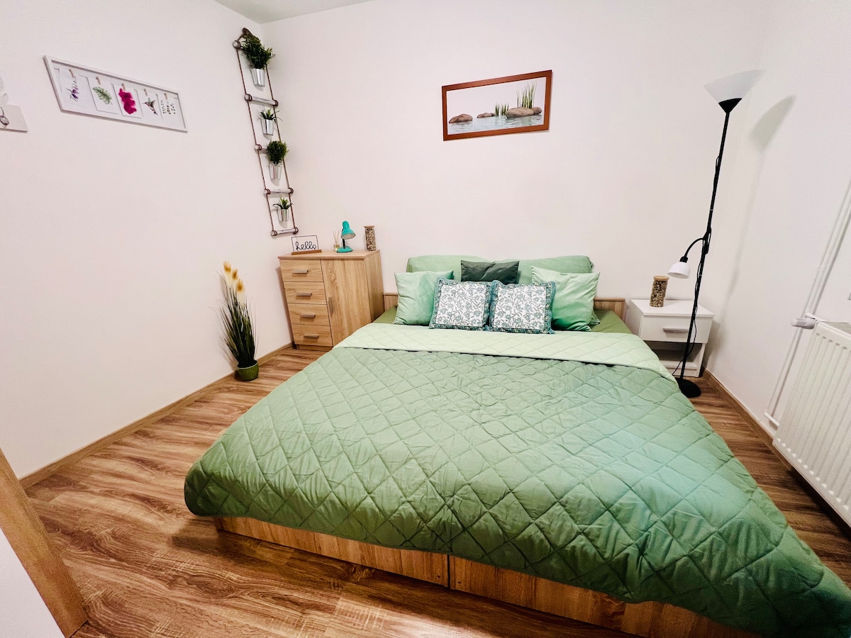 Một căn hộ nhỏ thoải mái, thiết thực với điều hòa không khí. Bạn có thể thưởng thức cà phê buổi sáng và các bữa ăn trong khu vườn ấm cúng thuộc căn hộ. Nhà thờ và trung tâm thành phố cách đó vài phút đi bộ. Có một trăm mét sông Danube, dọc theo đó có một con đường dành cho xe đạp và lối đi dạo đến trung tâm thành phố và cây cầu đến Slovakia. Chúng ta có thể đi bộ qua cây cầu đến quảng trường chính của Sieve, một ly bia tươi Slovakia ngon. Có bãi đỗ xe miễn phí trước căn hộ. Đối với xe đạp, đây là một nơi an toàn để đạp xe trong khu vườn khép kín.