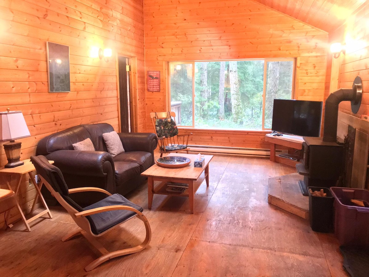 This very private cottage is clean, bright and comfortable. A wood stove and all natural wood interior with vaulted ceiling making it bright, comfortable, spacious, and inviting. The peace of the forest is rejuvenating and the outdoor bath tub for two a great joy. Beautiful hikes, kayaking, mountain biking and whale watching opportunities abound, and on rainy days, an eclectic selection of dvds. a A wonderful place to unplug for a few days. Your hosts Jerry Christine are available to assist you