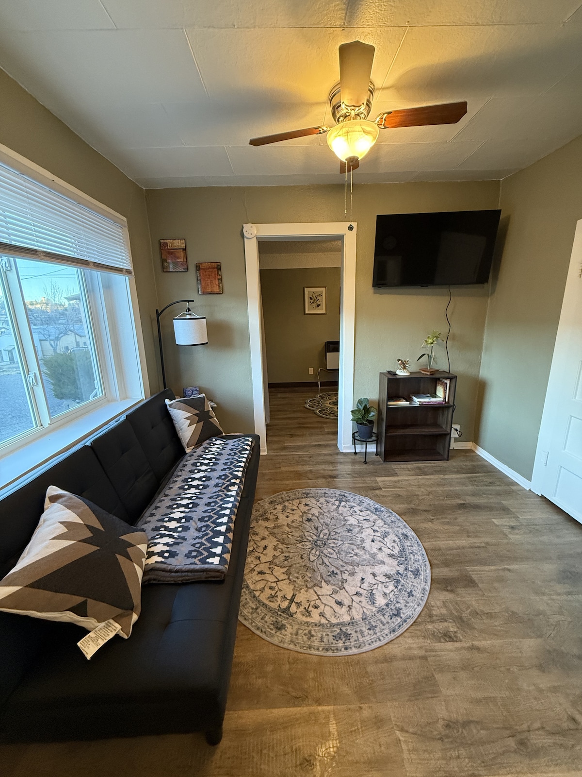 Nắm bắt sự quyến rũ vượt thời gian trong viên ngọc lịch sử này! Chỉ cách vài bước từ phố Bullard nhộn nhịp và trong khoảng cách đi bộ từ Đại học Western New Mexico. Phòng suite này (1 trong 3 phòng trong nhà) có giường cỡ King, giường sofa đầy đủ, bàn làm việc, Wifi tốc độ cao, TV lớn, phòng tắm đầy đủ và phòng khách rộng rãi với cửa sổ lồi.
