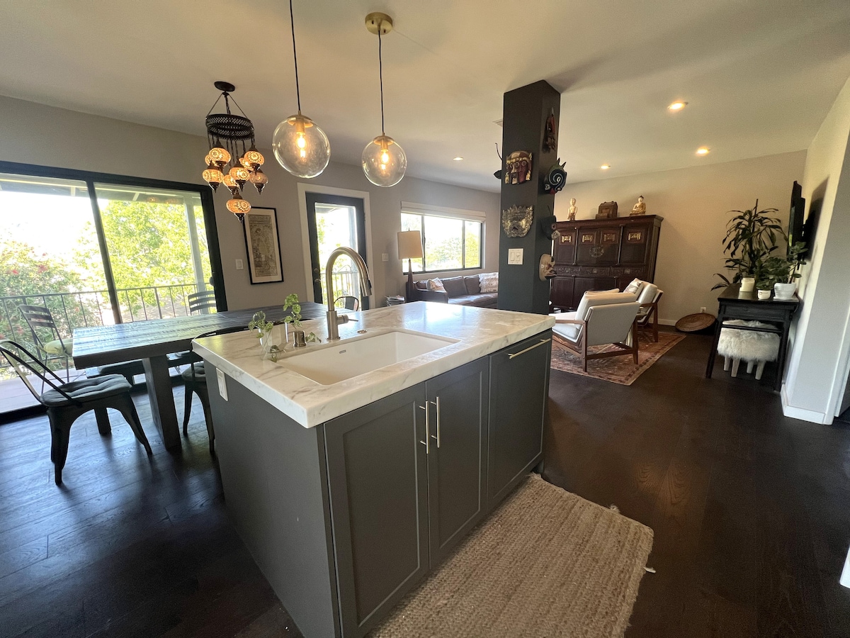 Tận hưởng trải nghiệm phong cách tại địa điểm nằm ở trung tâm này. 15 phút từ trung tâm thành phố, dễ dàng đậu xe, khoảng cách đi bộ từ các cửa hàng thực phẩm và cà phê tuyệt vời, tầm nhìn tuyệt vời! Không gian của chúng tôi được tạo ra cho một khách duy nhất cần một chút không gian để thư giãn hoặc như một nơi nghỉ ngơi lãng mạn và phong cách để các cặp đôi tận hưởng. Chỉ là báo trước một chút thôi. Ngôi nhà của chúng tôi nằm trên đỉnh một ngọn đồi khá dốc, mang đến cho bạn tầm nhìn tuyệt vời. Chỉ cần lưu ý nếu bạn không thoải mái khi đậu xe hoặc đi bộ trên một ngọn đồi.