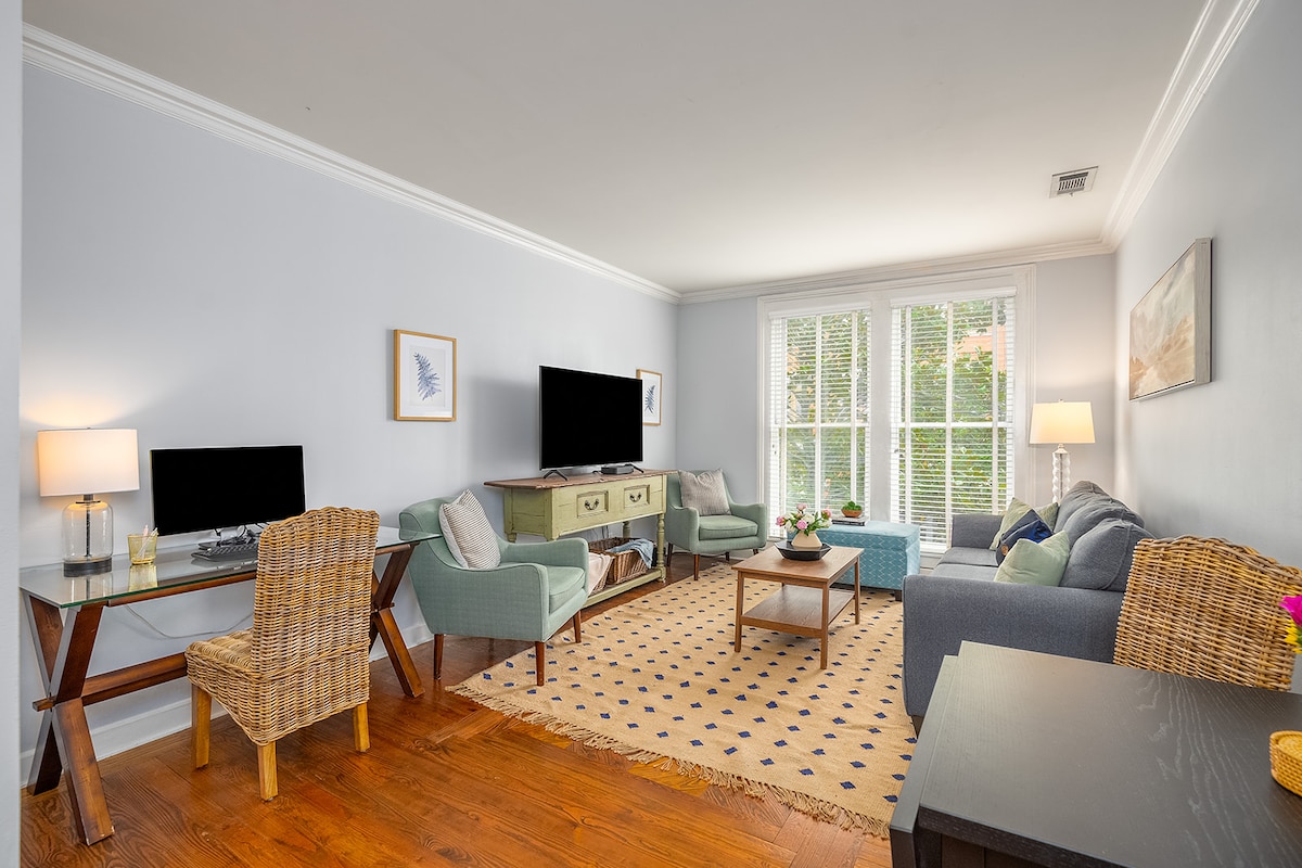 Trải nghiệm sự quyến rũ của Savannah lịch sử từ căn hộ 1 phòng ngủ, 1,5 phòng ngủ đầy phong cách này ngay trung tâm thành phố! Nội thất hiện đại, nhà bếp đầy đủ tiện nghi và ghế sofa kéo ấm cúng đảm bảo sự thoải mái. Căn hộ nhìn ra một con phố rợp bóng cây sồi sống đẹp như tranh vẽ, khiến bạn đắm chìm trong vẻ đẹp của Savannah. Nằm ngay trung tâm của mọi thứ, tận hưởng cuộc sống rộng rãi, chỗ đỗ xe thuận tiện trong gara gần đó và dễ dàng đi bộ đến các điểm tham quan của thành phố! Kỳ nghỉ lý tưởng của bạn đang chờ đón bạn, nơi lịch sử gặp gỡ sự sang trọng đương đại! SVR 02732