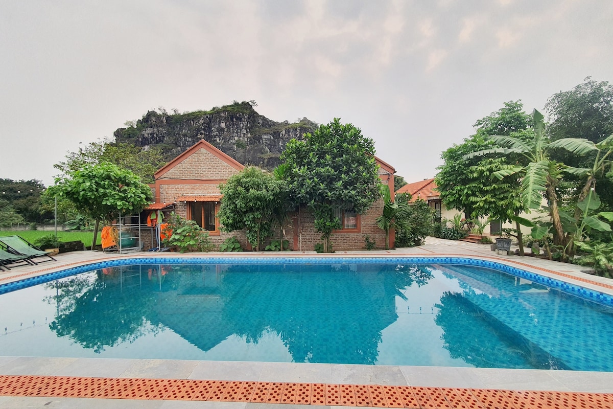 Trung tâm Khu du lịch Tam Cốc Bích Động. 13 phòng view núi và hồ bơi.Nhà hàng cung cấp dịch vụ tổ chức Gala Dinner, Pool Party, Nướng BBQ.Đội ngũ nhân viên chuyên nghiệp, nhiệt tình.Miễn phí bữa sáng buffet mỗi ngày,trà, cafe, nước suối đặt phòng hàng ngày,sử dụng dịch vụ bể bơi.Các điểm tham quan du lịch tại Ninh Bình:Bến thuyền Tam Cốc 500m, Bến Thung Nắng 3,6km, Thung Nham 6km, Hang Múa 3km, Phố Cổ Hoa Lư 10 km, Tràng An 12km, Chùa Bái Đính 25km.