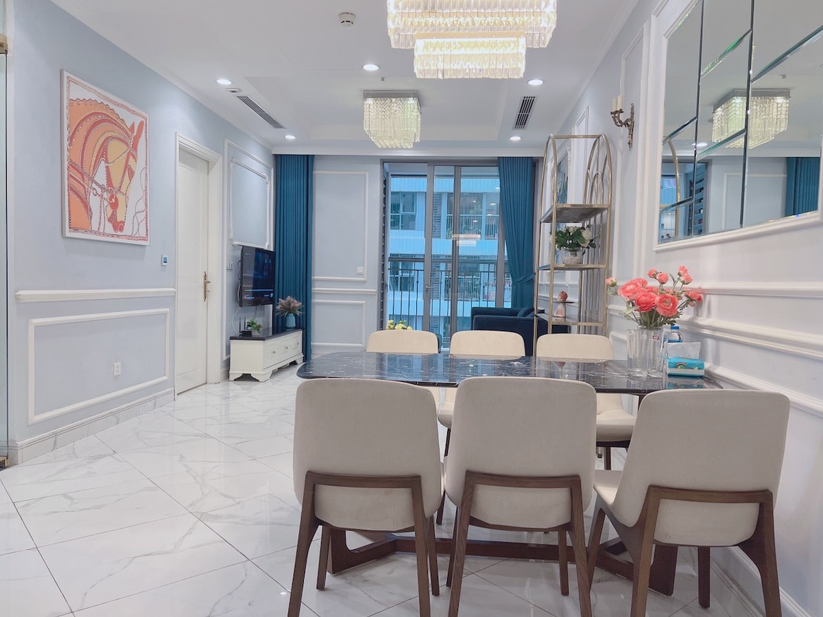 Căn hộ này nằm ở Vinhome Timescity, một khu phức hợp đô thị đương đại ở Hà Nội, tọa lạc tại vị trí thuận tiện gần Khu phố cổ Hà Nội, chỉ cách đó một chuyến xe buýt ngắn hoặc Grab. Khu phức hợp căn hộ tự hào có nhiều tiện nghi khác nhau, bao gồm một khu vườn ngoài trời quyến rũ và khu vui chơi cho trẻ em, phòng tập thể dục và hồ bơi bốn mùa, có tính phí. Ngoài ra, cư dân có thể sử dụng các lựa chọn giải trí như chương trình nhạc nước, thủy cung và rạp chiếu phim trong Vinhome Mega Mall gần đó.