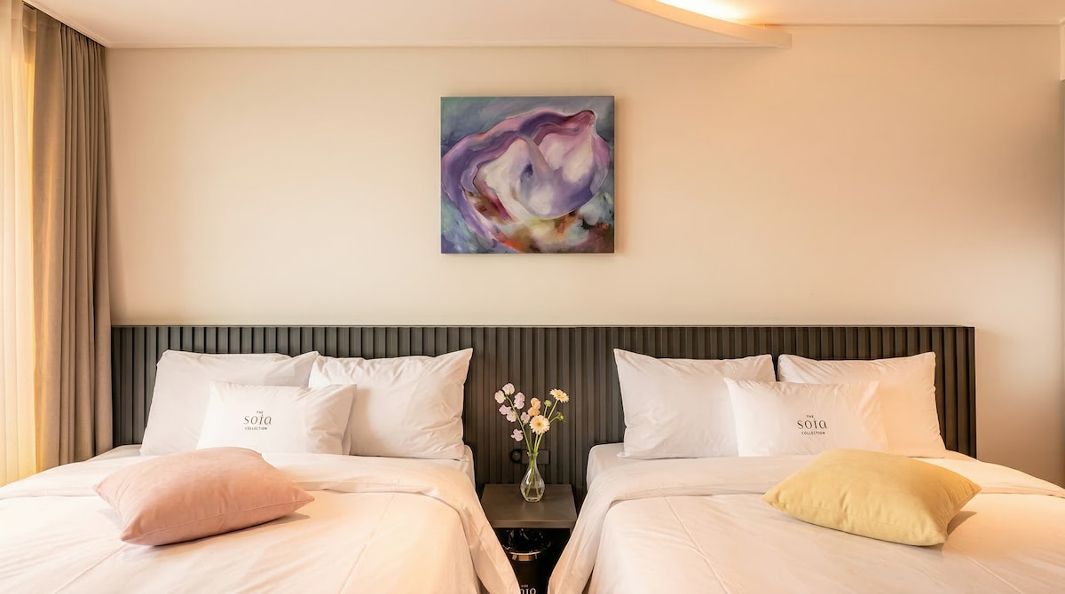 Gangneung và Yangyangsai Địa chỉ: 21 Yangyang Ocean Stay, Dongsan Big-gil, Hyeonnam-myeon Ở trên biển đầy nhân phẩm và thư giãn Biển xanh của Biển Đông và môi trường tự nhiên tuyệt đẹp của Dương Dương Dương cùng nhau mang đến những kỷ niệm và nghỉ ngơi tuyệt vời nhất. Chúng tôi mời bạn đến Ocean Stay Yangyang-ro, nơi bạn có thể ngắm bình minh và quang cảnh ban đêm ở Yangyang, thánh địa Surf's Mecca.Tạo những kỷ niệm mới ở đây với gia đình, bạn bè và những người yêu thích! Trung tâm của Bãi biển Jukdo và vành đai du lịch Bờ Đông, nơi 450.000 người lướt sóng yêu thích nhất, có thể tận hưởng các bãi biển của Bãi biển Jukdo và Bãi biển Cảng Dongsan, nơi giới trẻ hít thở. Bãi biển yên tĩnh và sạch sẽ là nơi tuyệt vời để các gia đình hoặc cặp đôi thư giãn và chữa lành, và bạn có thể tận hưởng không chỉ lướt sóng, mà còn cả bơi lội, câu cá và đi bộ đường dài. Chúng tôi sẽ cung cấp cho bạn một không gian đặc biệt làm cho ngay cả phần còn lại của bạn trở thành một kỷ niệm. Đây là phòng suite cao cấp hiện đại, nơi bạn có thể thư giãn thoải mái, chẳng hạn như khách doanh nhân, khách du lịch, v.v. 2 phòng ngủ, 2 giường đôi và một sofa giường trong phòng khách. Tiêu chuẩn 4 người tối đa 5 người