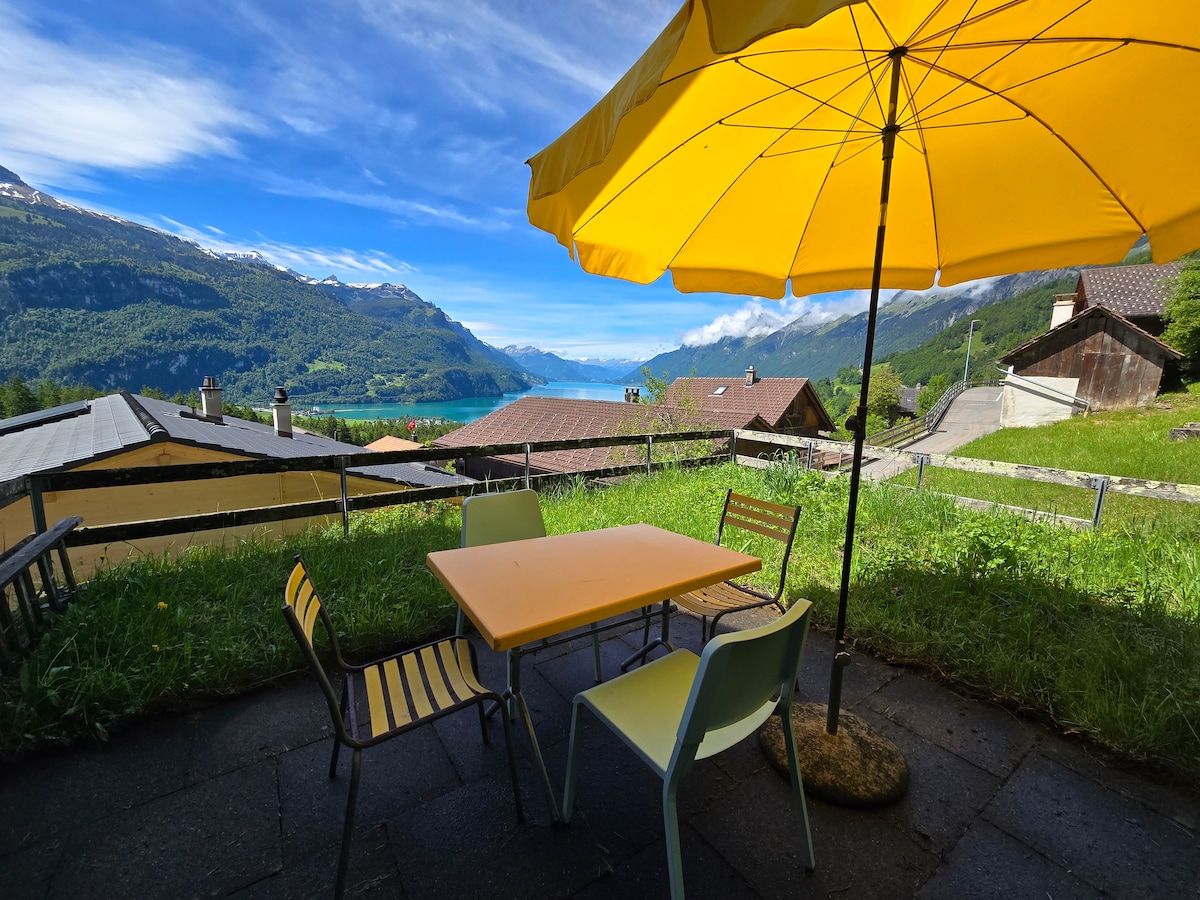 Tận hưởng cuộc sống trong chỗ ở yên tĩnh và nằm ở trung tâm này với tầm nhìn độc đáo ra ngôi làng xinh đẹp, núi non và Hồ Brienz. Căn hộ cung cấp tất cả các tiện nghi với World Cup, máy sấy quần áo, cà phê và máy rửa chén, khu vực chỗ ngồi ngoài trời lớn với ghế ngồi trên boong, kem chống nắng, tiệc nướng. Cơ hội mua sắm, ga tàu, ga tàu, Rothornbergbahn, giao thông công cộng, sân chơi, lối đi dạo trên hồ, rạp chiếu phim chỉ cách đó 10 phút đi bộ. Bãi đỗ xe không bị cản trở ở phía sau ngôi nhà. Khu nghỉ dưỡng trượt tuyết 20 phút lái xe.