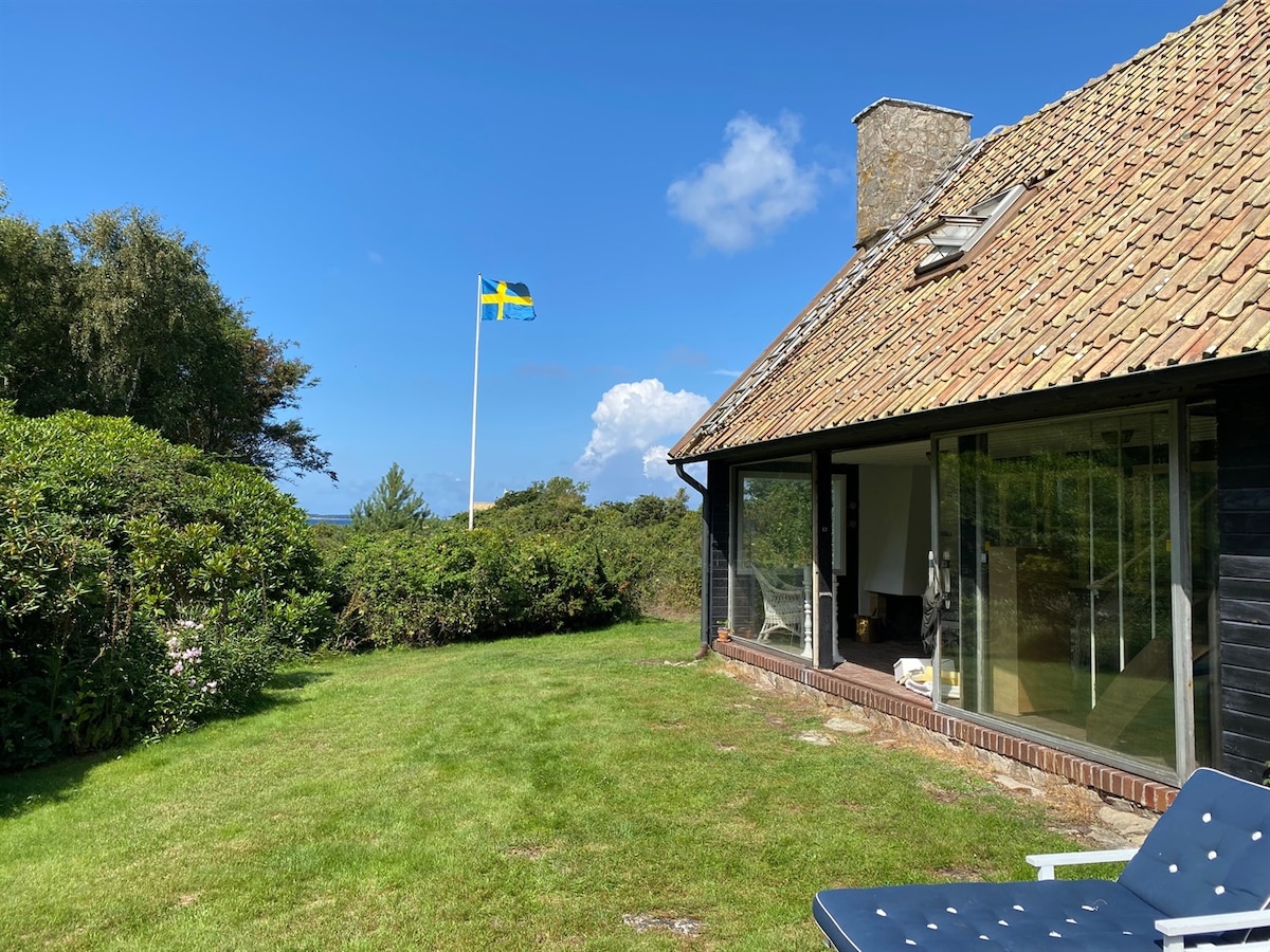 Fantastic seafront cottage, 80 steps to sea and the most beautiful beach, a peaceful nature reserve. Only the moon and stars lighten up in the night. Well known for its rich fish and bird life. "This is a hidden place in Paradise!", according to one of our guests. Excellent living for nature lovers, only 12 minutes drive to touristic resorts Bastad and Torekov. Golfers reach four beautiful courses ten minutes away. If we are at home, we will serve you a full organic breakfast at a small charge.