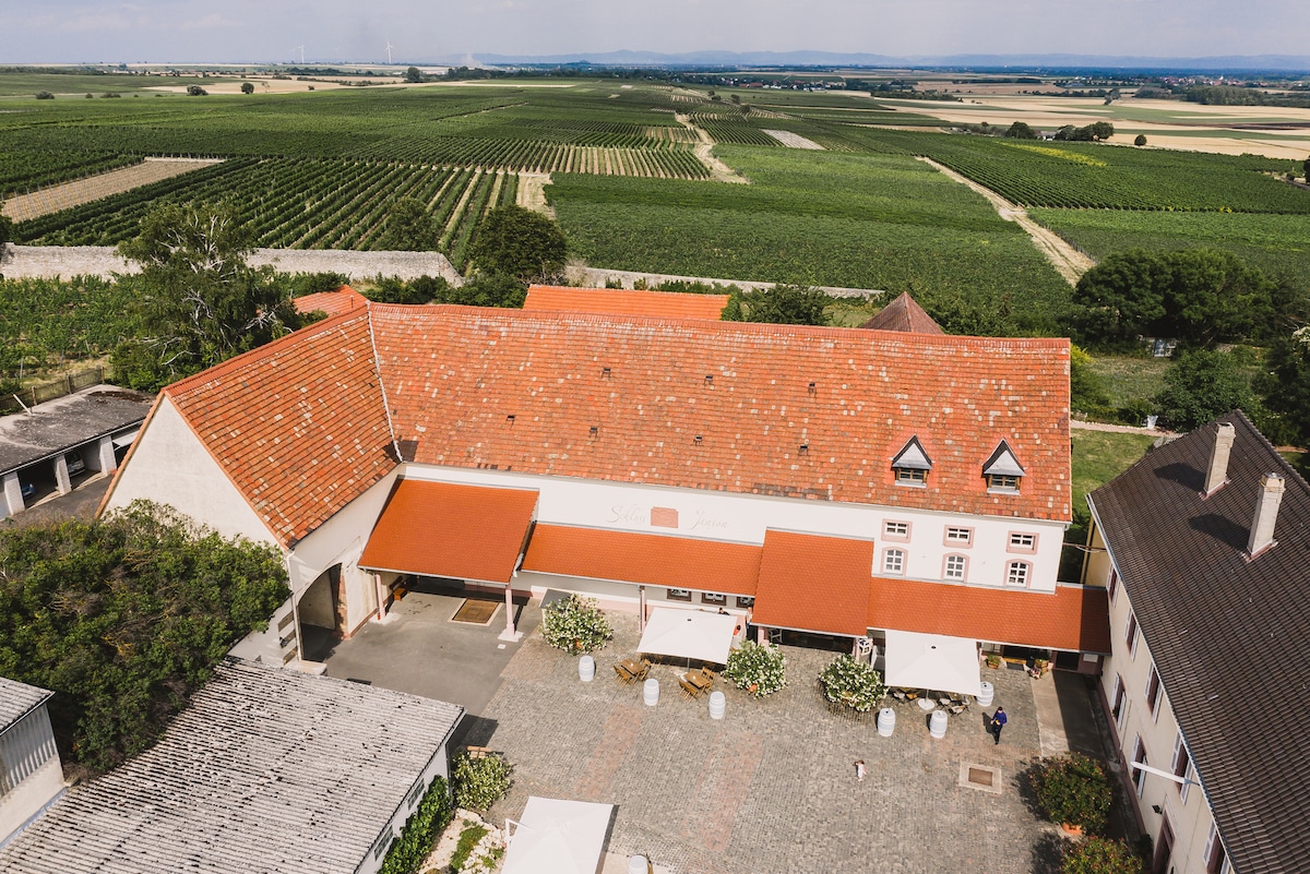 Một nét sang trọng ở đất nước rượu vang Đức! Chào mừng bạn đến với Nhà khách của Jansons! Một nhà máy rượu vang và bất động sản do gia đình điều hành ở mũi phía bắc của Đường mòn rượu vang Đức ở Pfalz. Nhà khách lịch sử của chúng tôi - đã ở trong gia đình Janson trong 6 thế hệ - cung cấp chỗ ở cho các nhóm tối đa 15 người. Ngôi nhà linh hoạt, thoải mái, nhưng có đầy đủ các tiện nghi của một khách sạn sang trọng.
