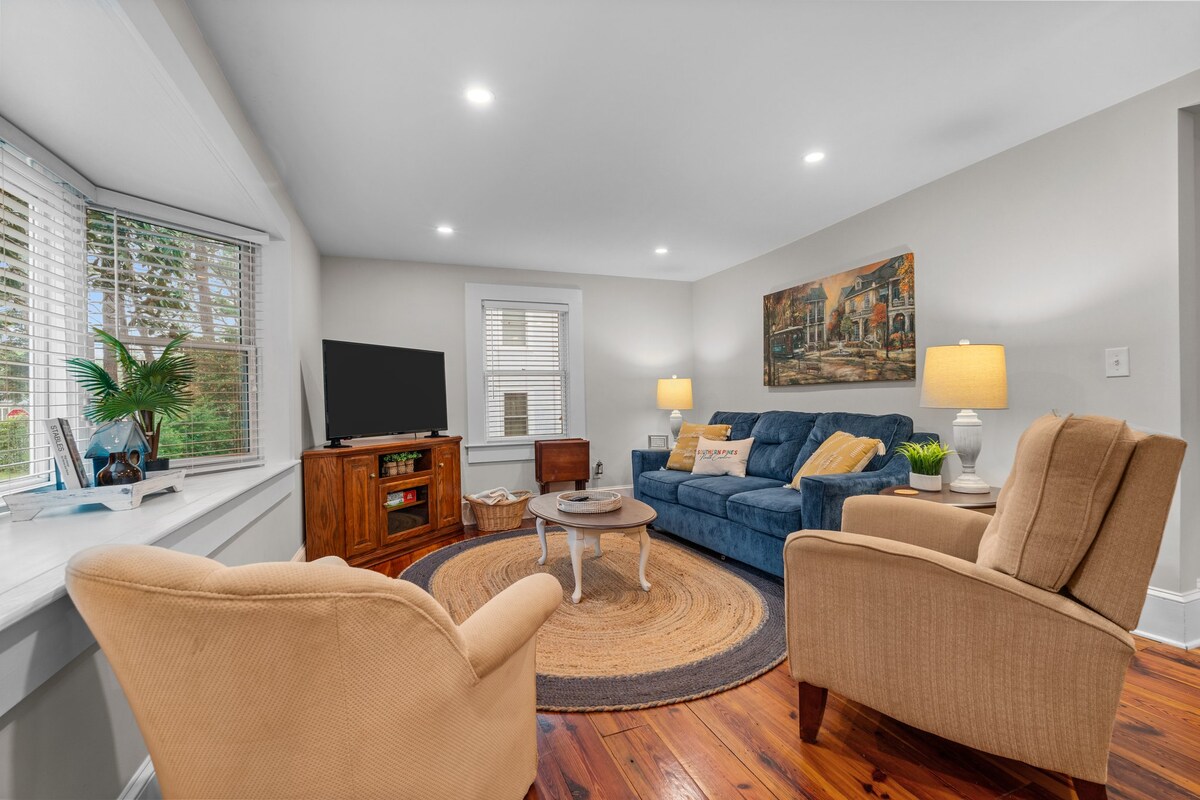 Nằm ở trung tâm của Downtown Southern Pines, phòng riêng của tôi là một thiên đường ấm cúng, cao cấp cho những người tìm kiếm sự tiện lợi và thoải mái. Nằm trên một con phố yên tĩnh, chỉ cách các nhà hàng và cửa hàng tuyệt vời một dãy nhà và dễ dàng đi bộ đến tất cả các điểm nóng địa phương. Nơi đây hoàn hảo cho những người ưu tiên vị trí và sự thoải mái. Phòng cung cấp giường thoải mái, bếp nhỏ và bồn tắm lớn với bom tắm được cung cấp để ngâm mình sau một ngày chơi golf, làm việc, khám phá thị trấn hoặc phục vụ đất nước của chúng tôi.