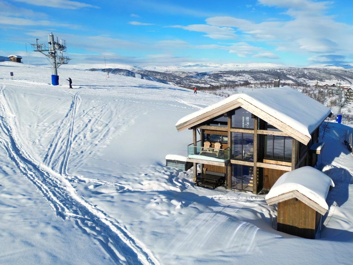 Exclusive and beautifully styled mountain cabin located at the very top of Kikut, Geilo - at the highest point of the ski-lift. Direct ski-in/ski-out access to alpine slopes and cross-country trails. The cabin offers a private sauna, outdoor jacuzzi and stunning mountain views – the perfect place for a relaxing and luxurious stay in the Norwegian mountains.