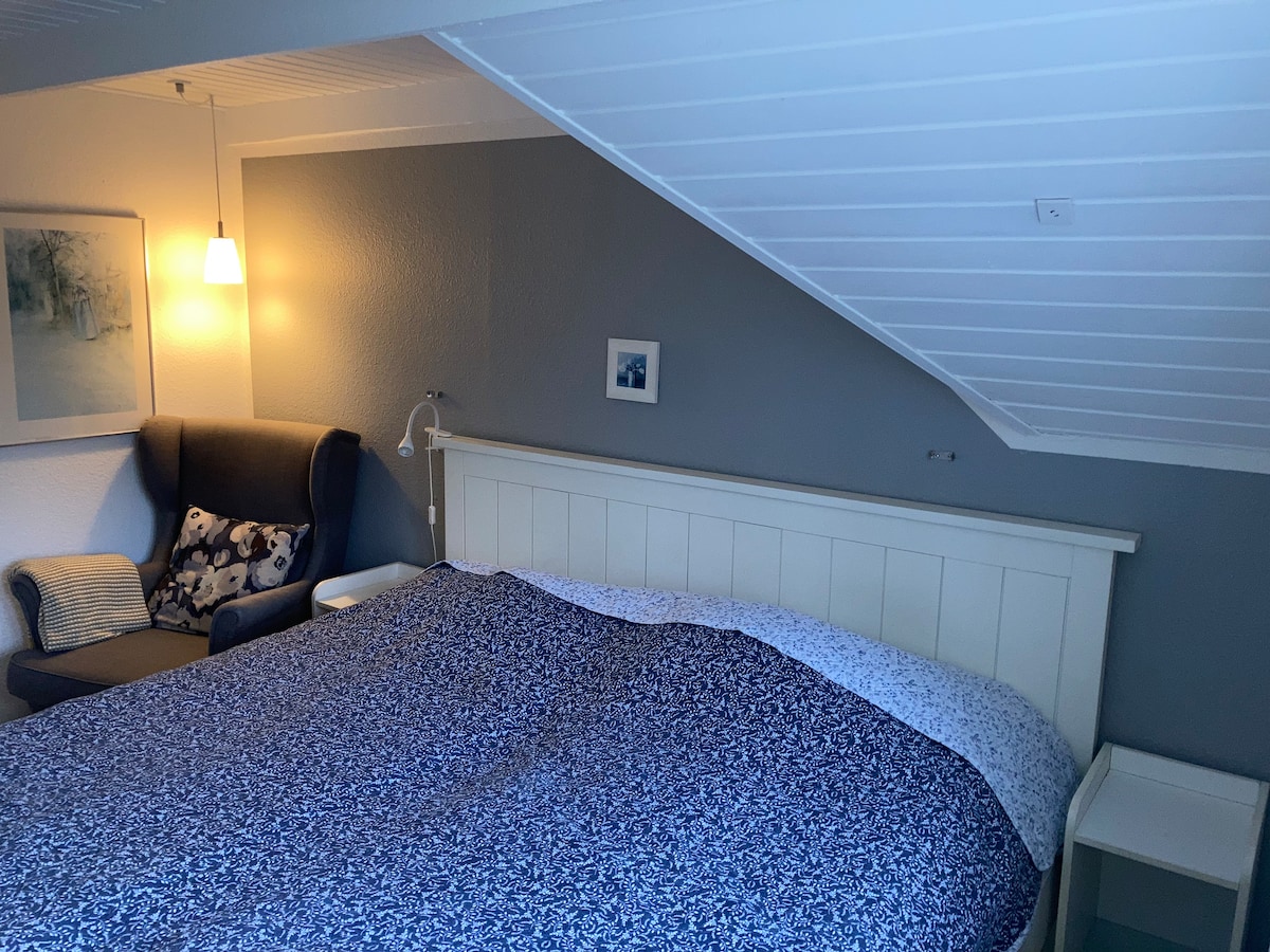 2 km til centrum/gågade. 1,5 km til nærmeste supermarked. Gratis parkering foran huset. Stille omgivelser. Beliggende i et skønt naturområde: 50m fra en skov med stisystemer. 500m til vandkraftssøen. Søen rundt er 8km. 1 dobbeltseng. 1 dobbelt luftmadras. Linned inkluderer. Medbring selv håndklæder eller efterspørg tilkøb. Ingen skabsplads tilgængelig. TV, men INGEN Wifi. TVet skal derfor kobles på dit mobil-hotspot. Dyr er ikke tilladt. Rygning er ikke tilladt.