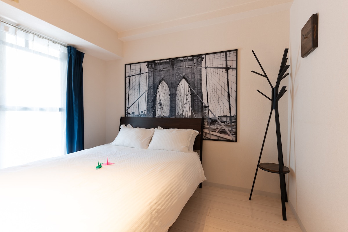 Cách ga tàu điện ngầm, ga Daikokucho 220 m, 1 điểm dừng đến Namba/Shinsaibashi, đi thẳng đến Umeda, toàn bộ căn hộ, 2 phòng ngủ, 5 người